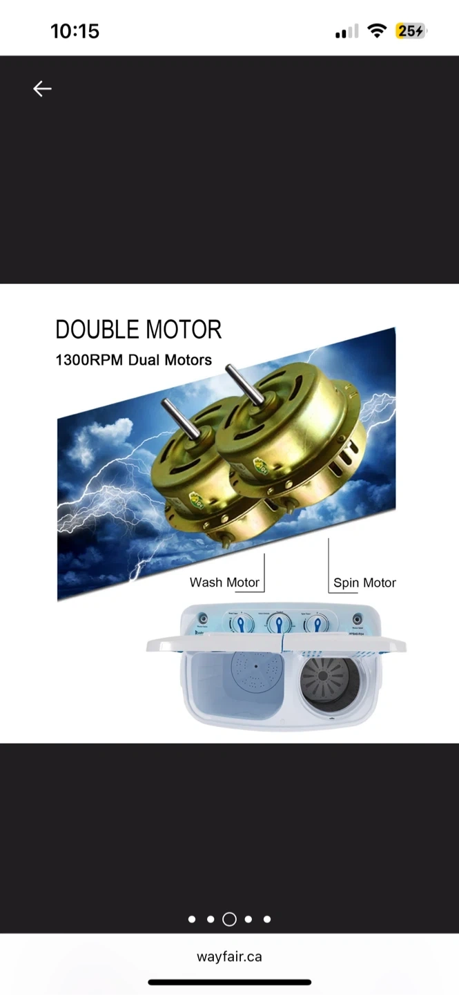 Looking to sell this portable washing machine. It features a twin tub design with separate compartments for washing (7.9 lbs) and dehydration (5.5 lbs).