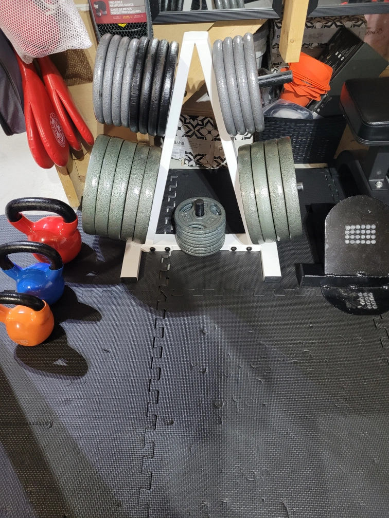 Selling a set of weight plates with a rack. Great for setting up your home gym: