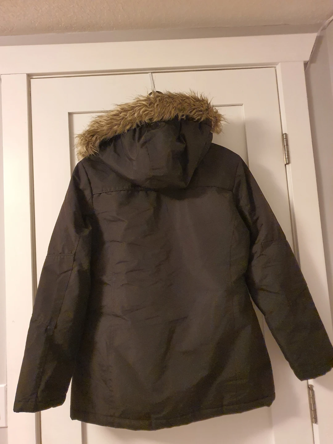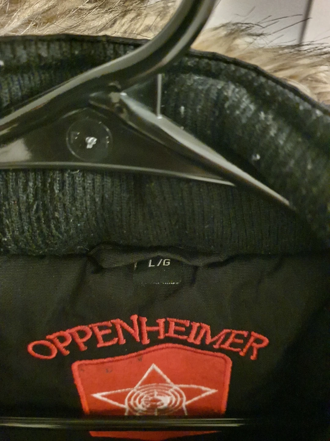 Selling an Oppenheimer black winter coat in size L. It's in great condition and ready for the Canada cold weather! The coat features a faux fur hood and a stylish design. Needs to fix the zipper but it has buttons. See pictures for reference.