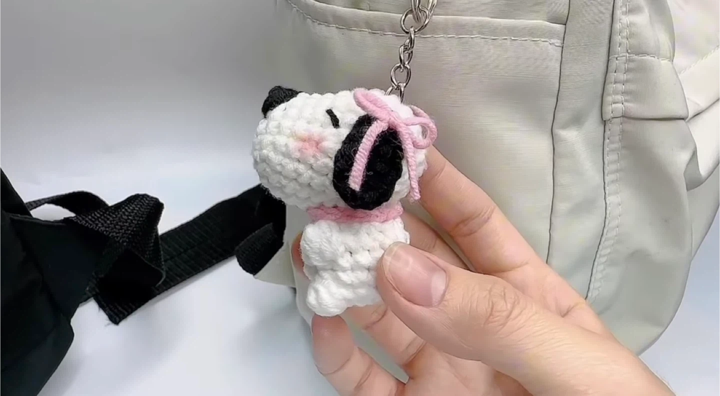 These adorable crochet Snoopy keychains are perfect for couples! They're handmade with love and attention to detail. One Snoopy has a red collar, and the other has a pink bow. They are in great condition and ready to add some cuteness to your keys or bags