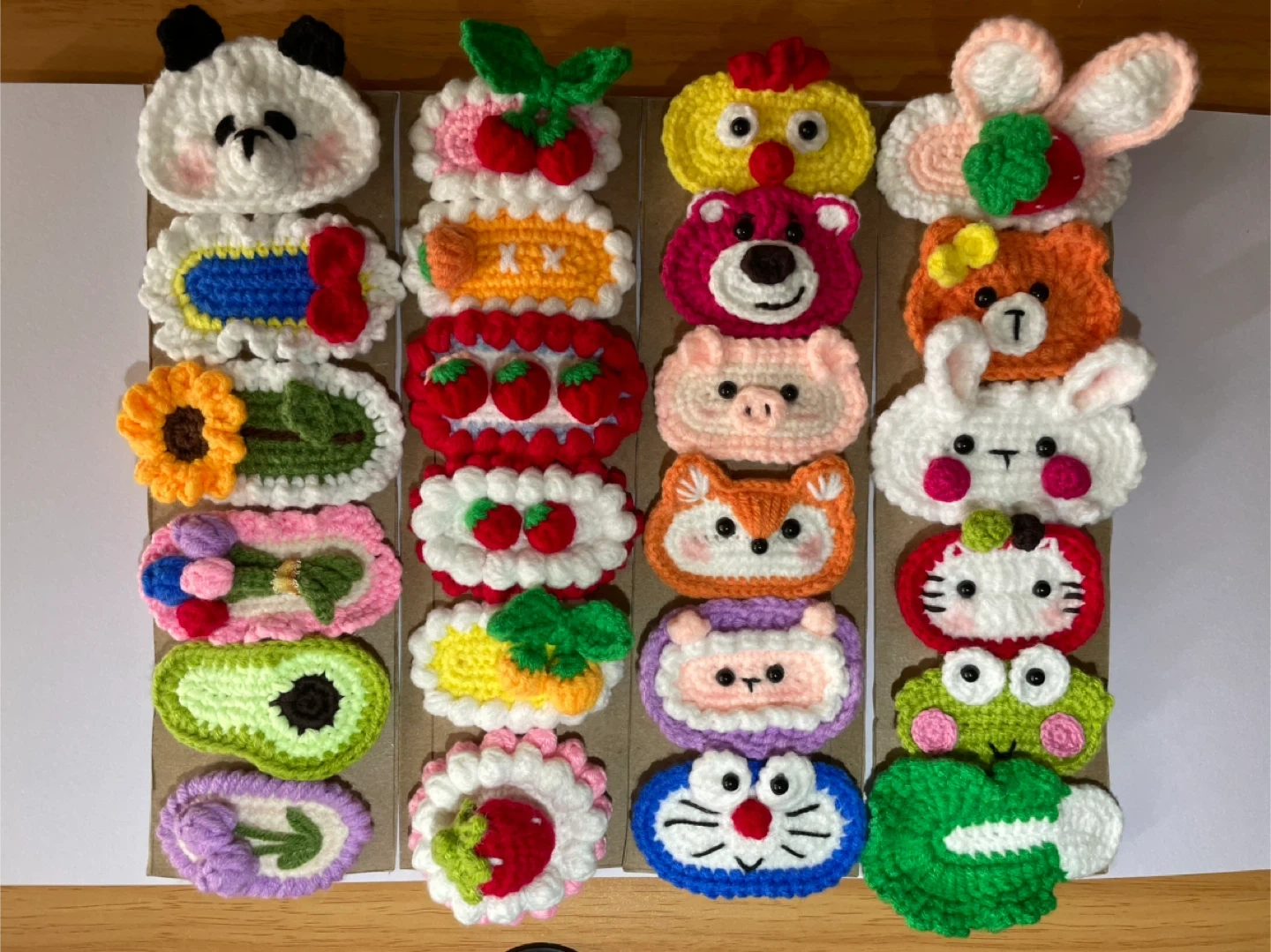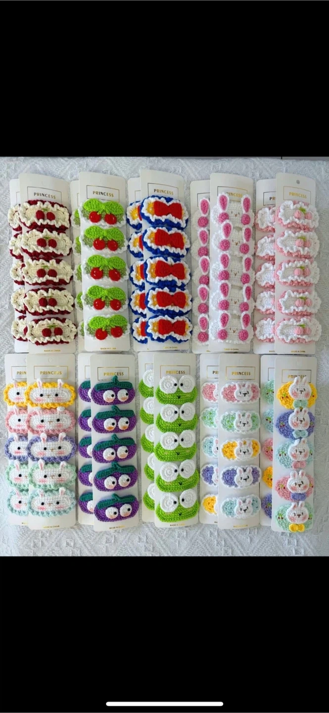 Check out these super cute handmade crochet hair clips! They come in a variety of adorable animal and fruit designs. Perfect for adding a touch of fun to any hairstyle!