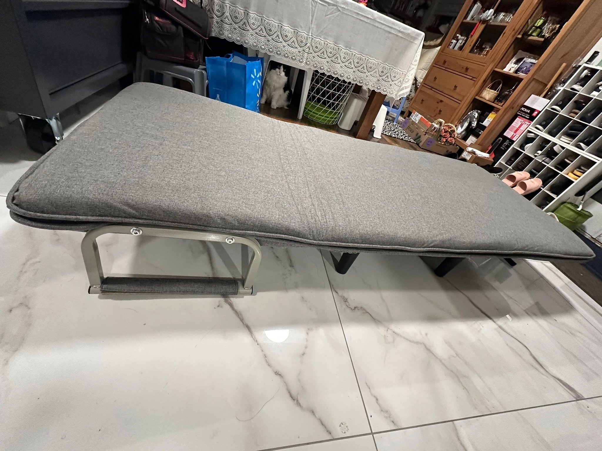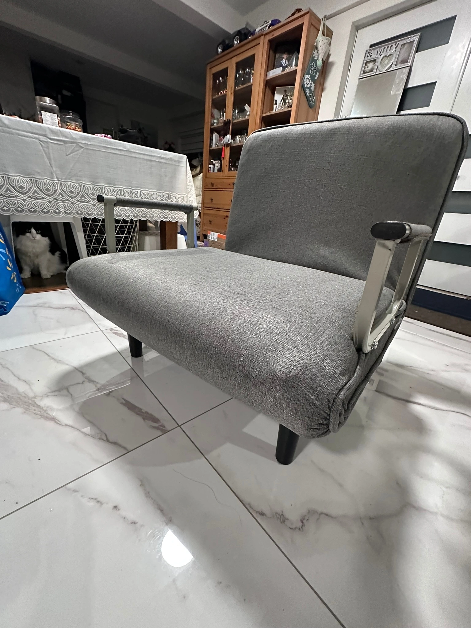 Convertible sleeper chair in grey! This versatile chair can be used as a seat or laid flat as a bed. Perfect for small spaces or guest rooms