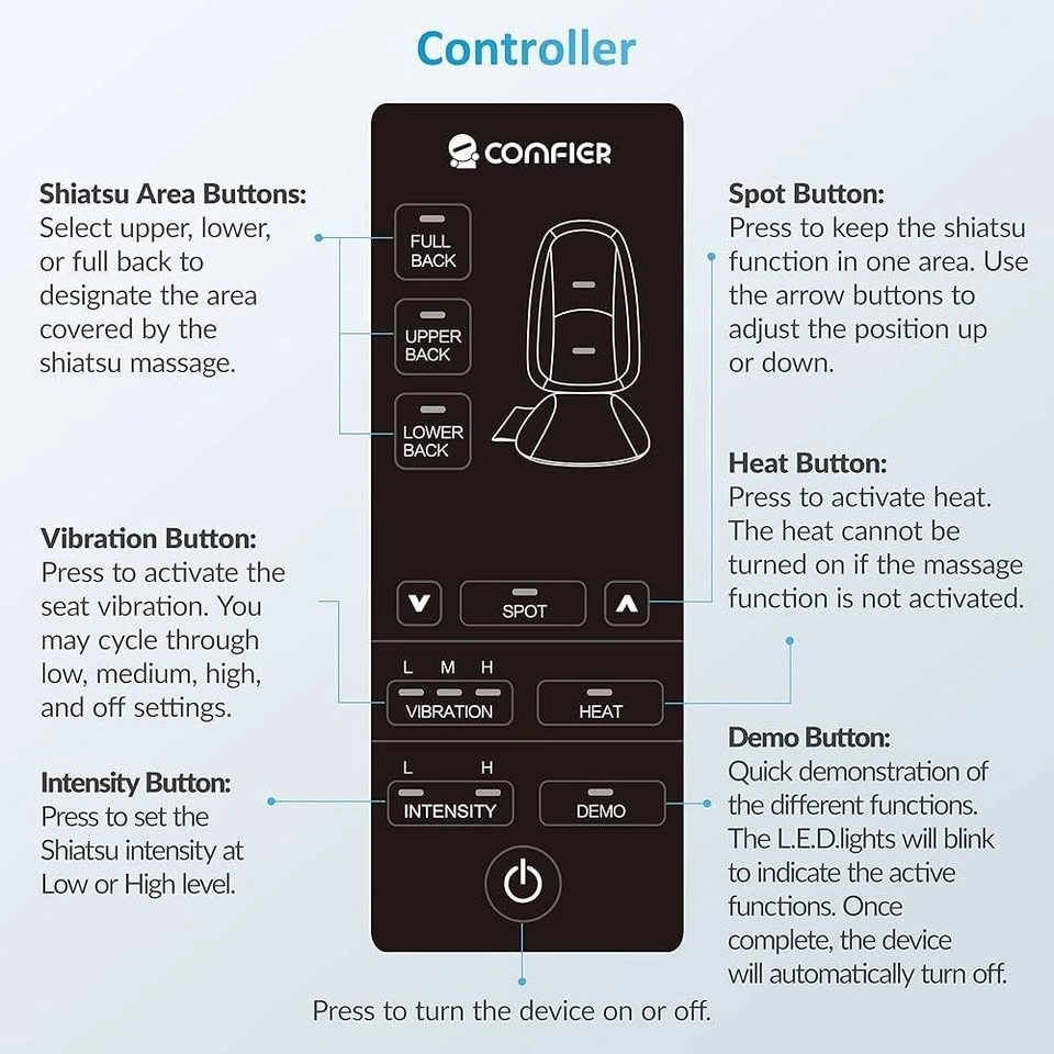 Relax and relieve muscle tension at home or in the office with the COMFIER Shiatsu Back Massager. Designed to deliver deep-kneading shiatsu massage, soothing heat, and vibration therapy, this chair pad turns almost any chair into a personal massage chair.