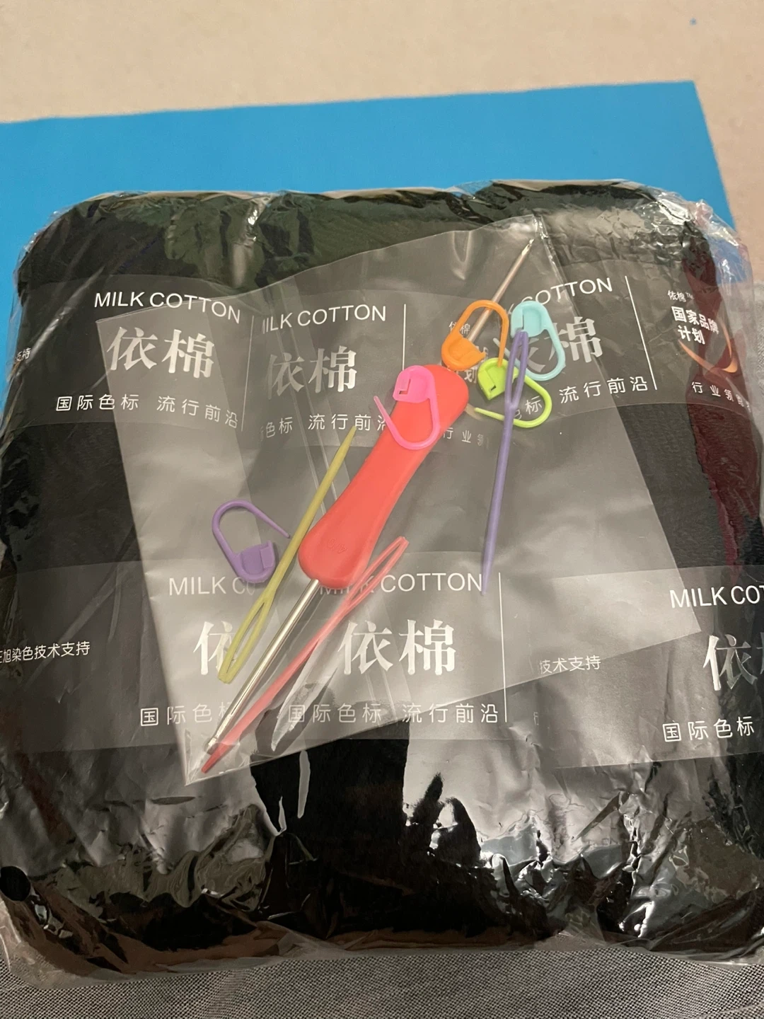 I have bundles of Milk Cotton yarn available in purple, green, teal, and black! Each bundle comes with crochet needles and stitch markers, perfect for your next project