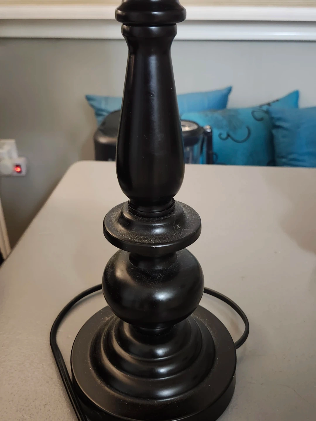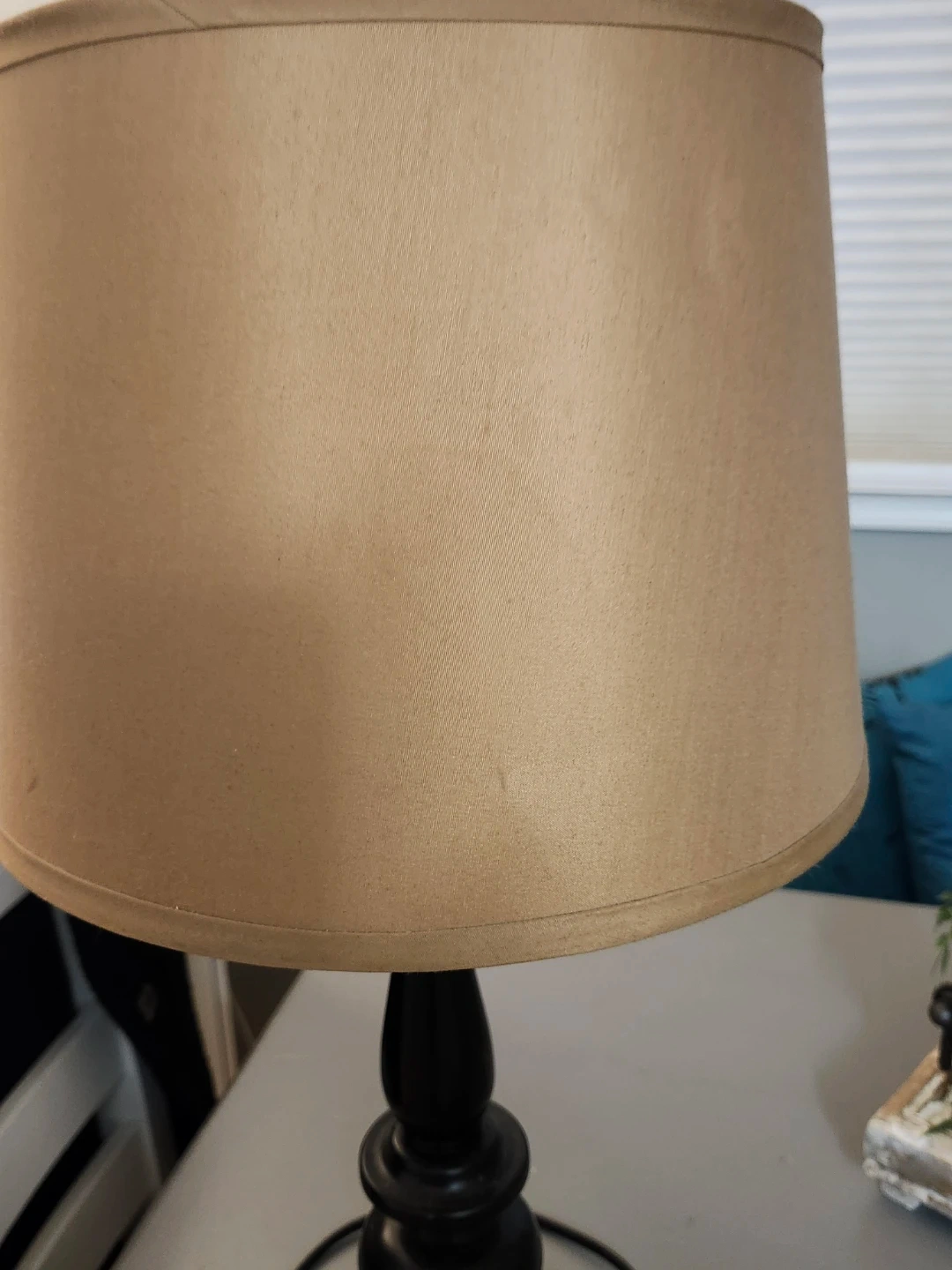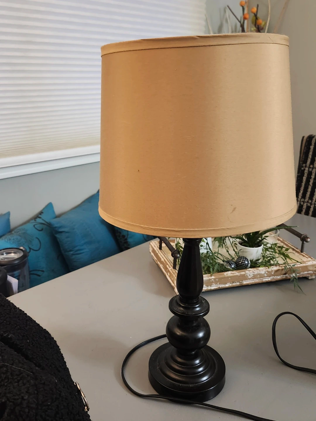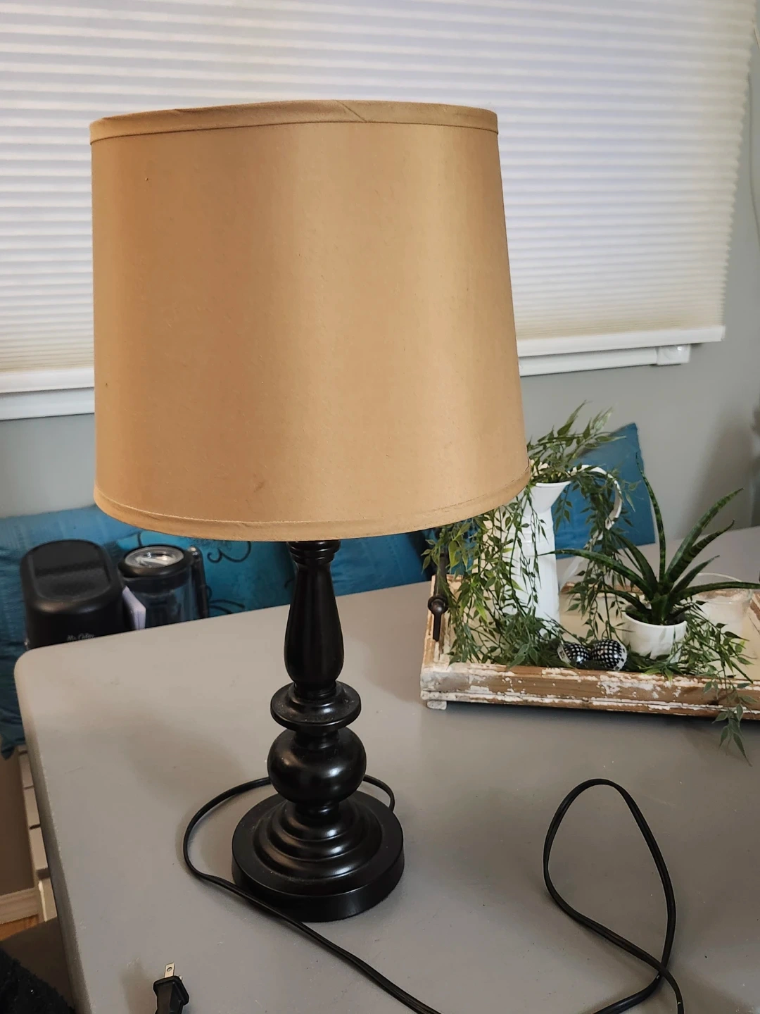 Here's a nice accent table lamp! It features a dark brown base and a tan shade. It would look great in any room!
