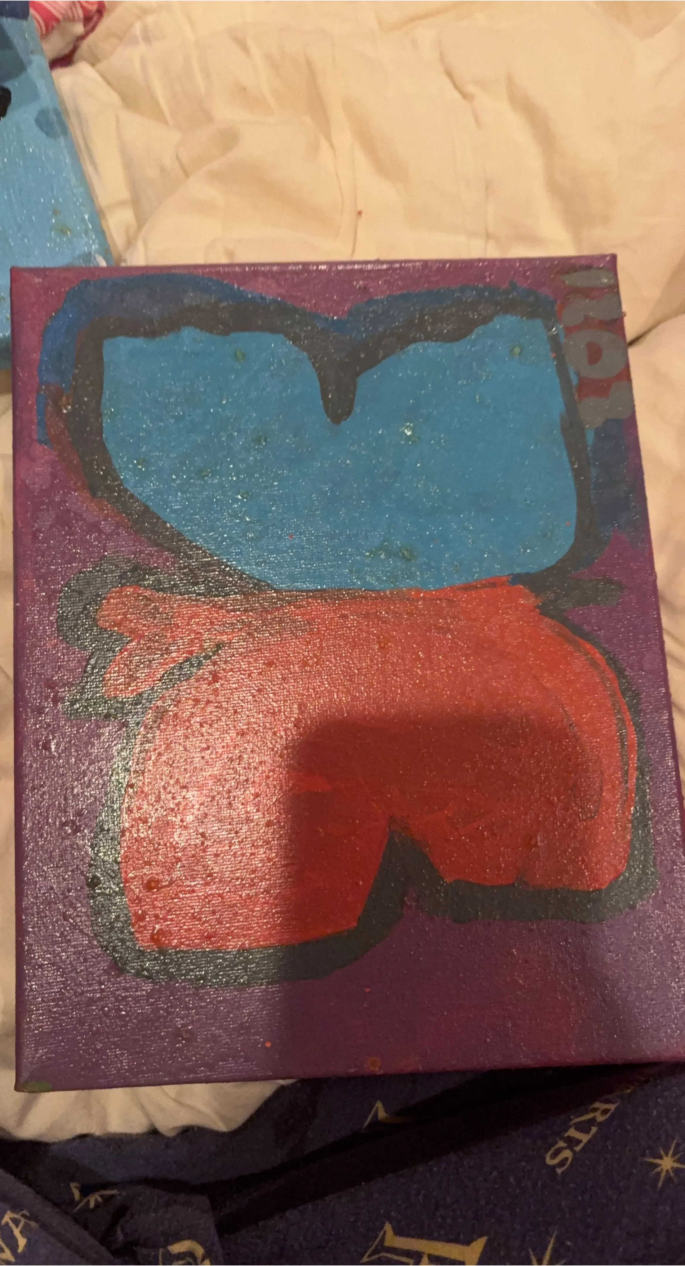 This is a handmade painting inspired by Among Us. It features a unique design with vibrant colours. Perfect for fans of the game or anyone looking for a fun piece of art!