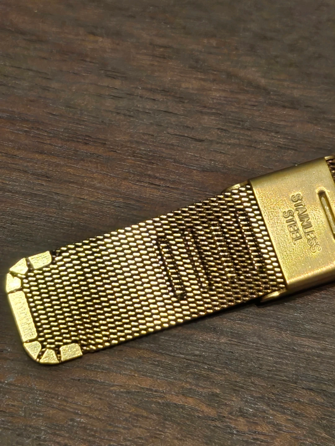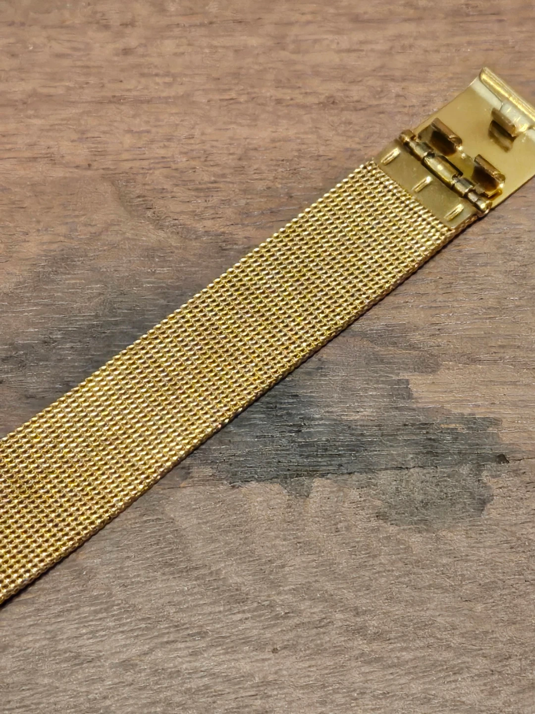 Selling a stylish TCK watch with a gold stainless steel mesh band. The case back is also stainless steel. It's in great shape and ready for a new wrist!