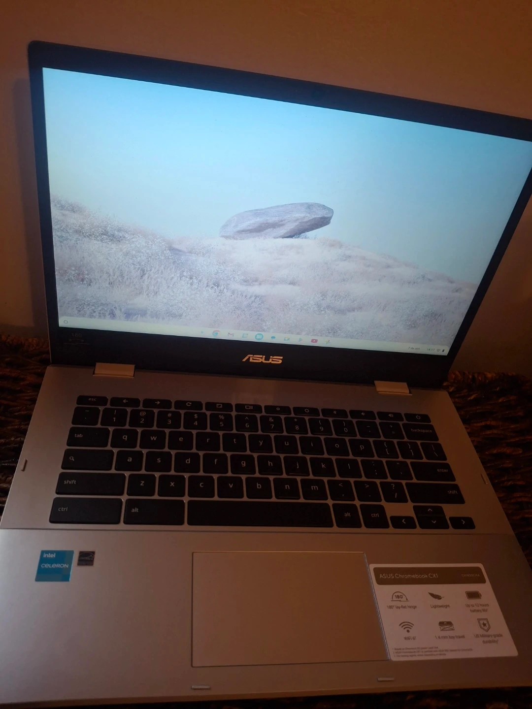 Selling an ASUS Chromebook CX1400CK! It's in great condition and ready for a new user. This Chromebook is lightweight and portable, perfect for on-the-go use. It has a 45W power input.