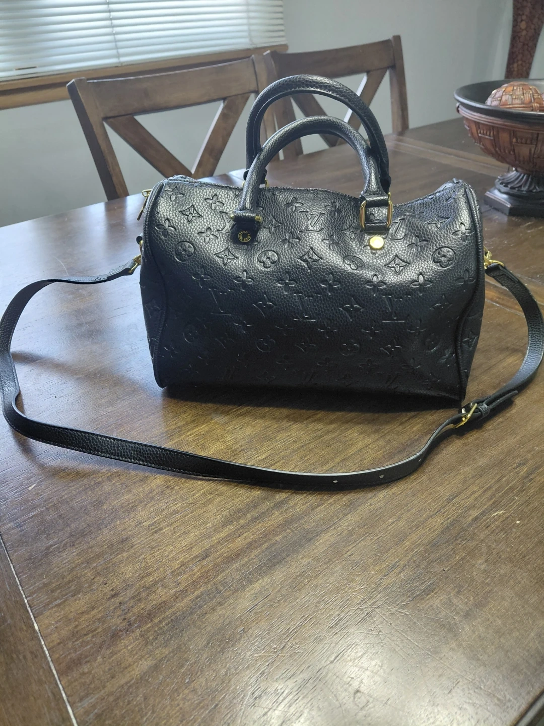 Selling a Louis Vuitton Speedy handbag in black leather! It's in great condition and ready for a new owner. The bag features a stylish design and is perfect for everyday use.
