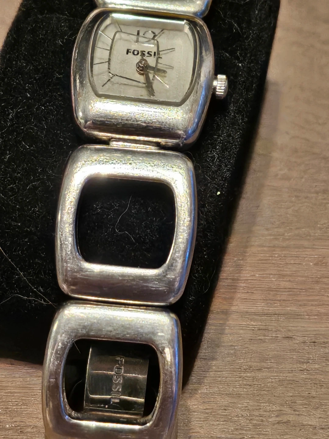 Selling a Fossil women's watch in silver! It's a stylish and classic timepiece that would make a great addition to any outfit. The middle square is loose and moves around, Hans the reason it's free.