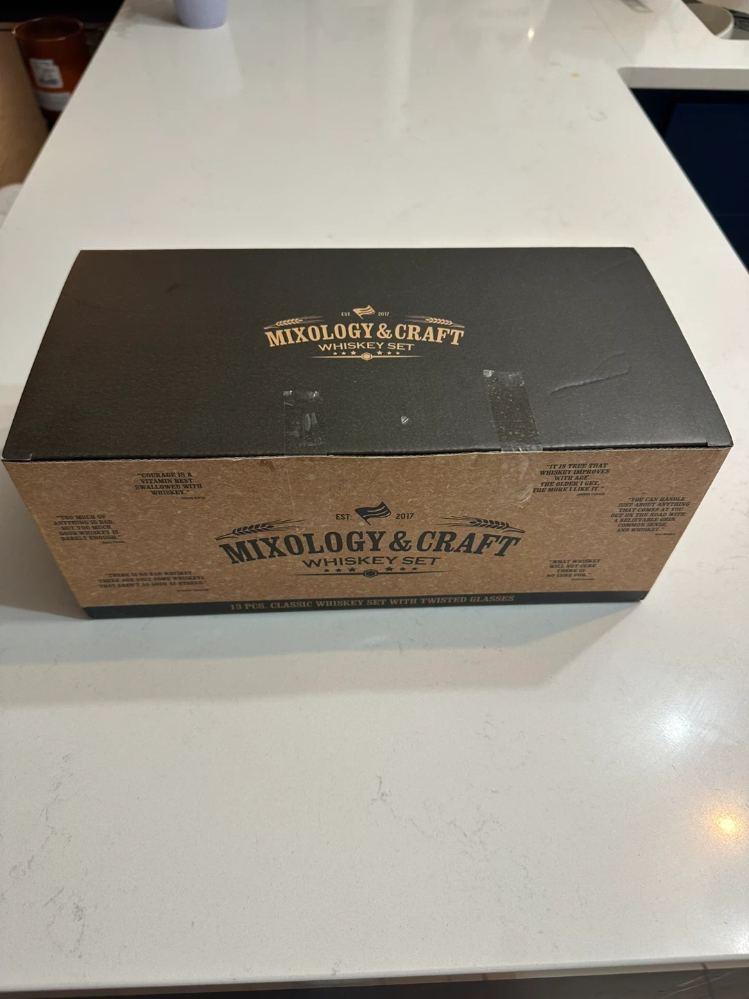 Selling a brand new Mixology & Craft Whiskey Set! This 13-piece classic set with twisted glasses is still in its original packaging.