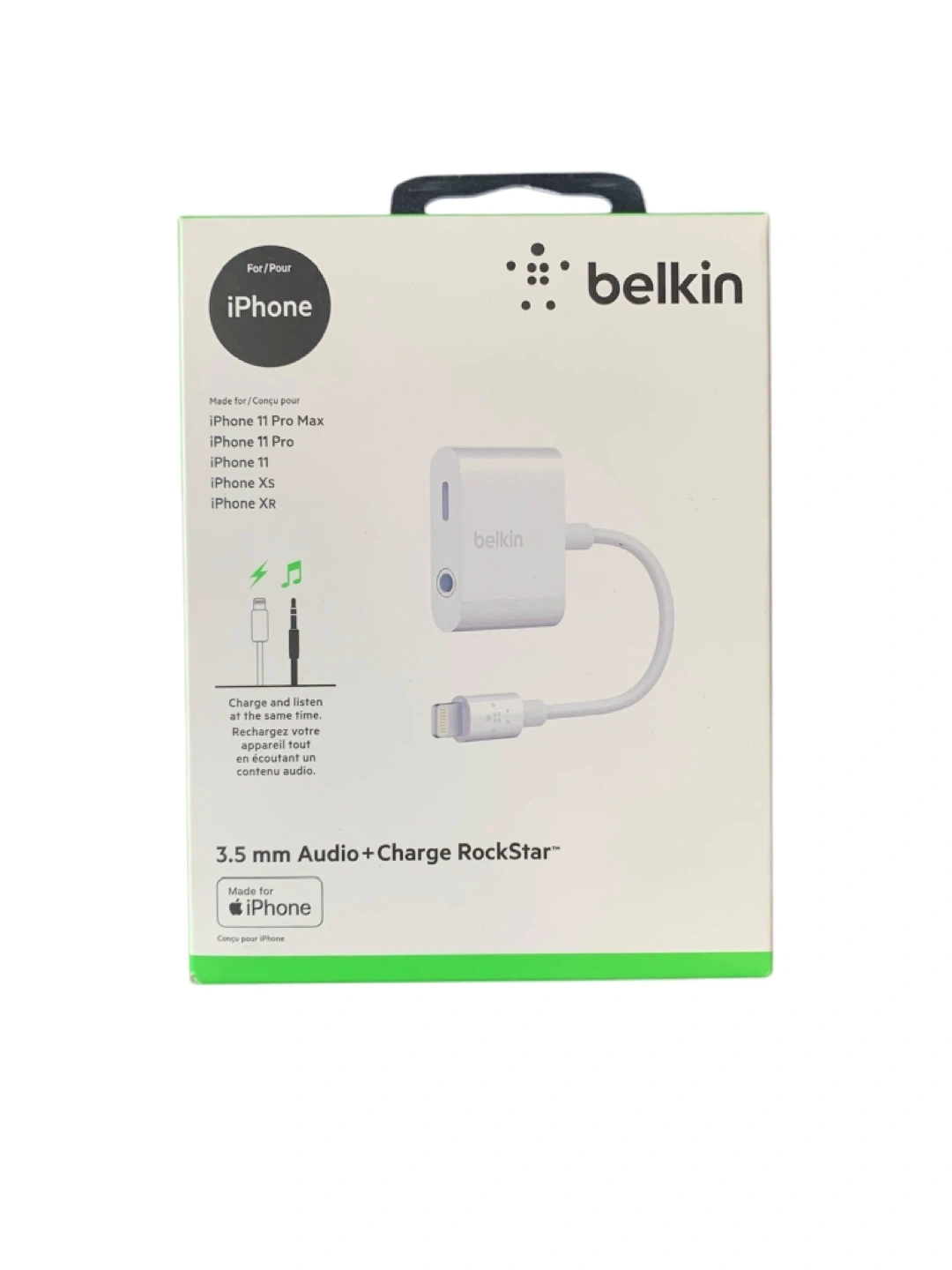 Enjoy music, calls, and audio while charging your iPhone at the same time. The Belkin Audio + Charge RockStar is designed for iPhones without a headphone jack, restoring the convenience of wired headphones without sacrificing battery life.