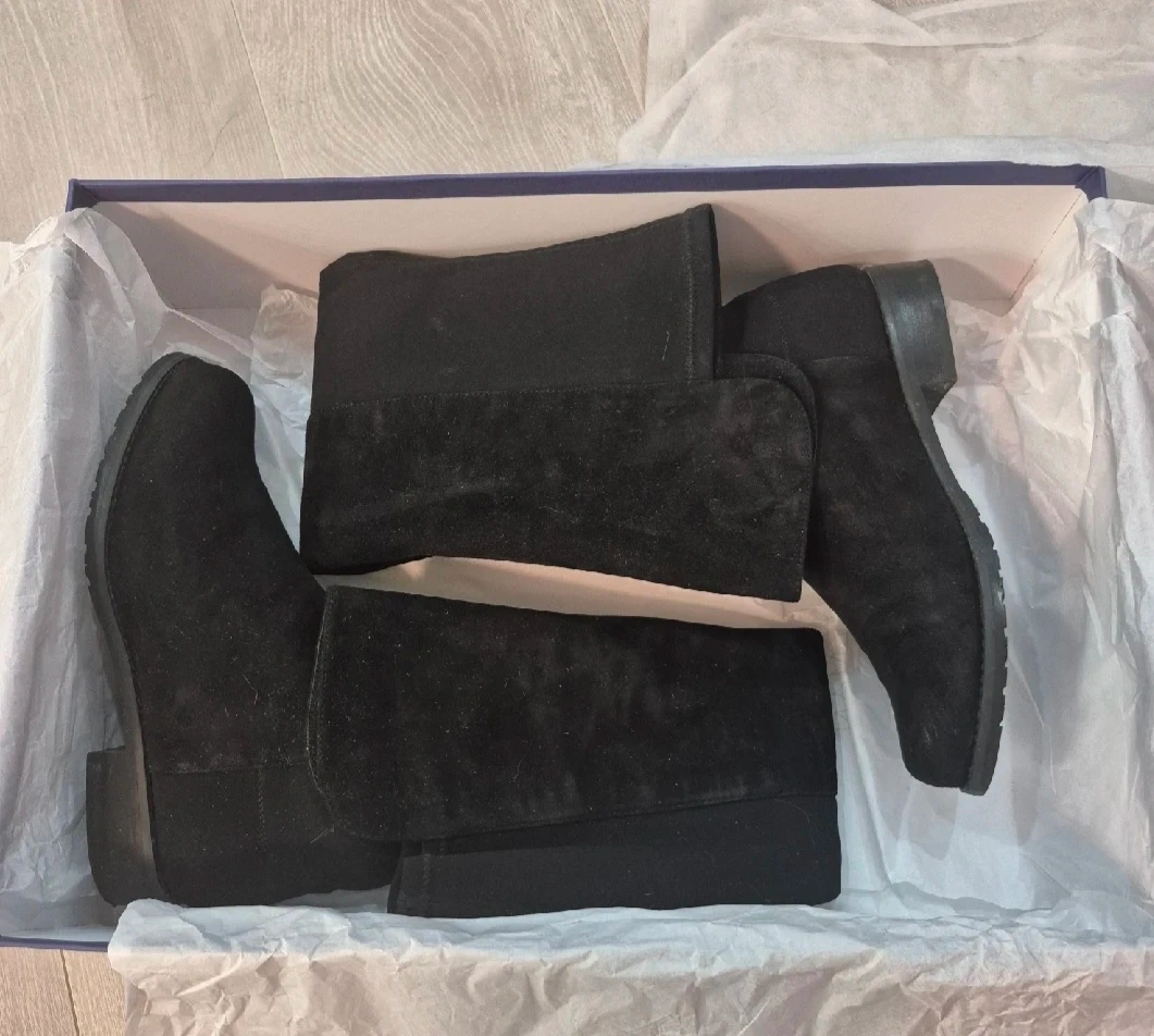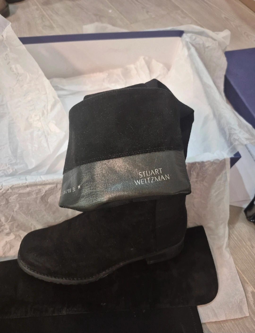 Selling a pair of Stuart Weitzman boots in black suede. They come with the original box. These boots are perfect for adding a touch of elegance to any outfit!
