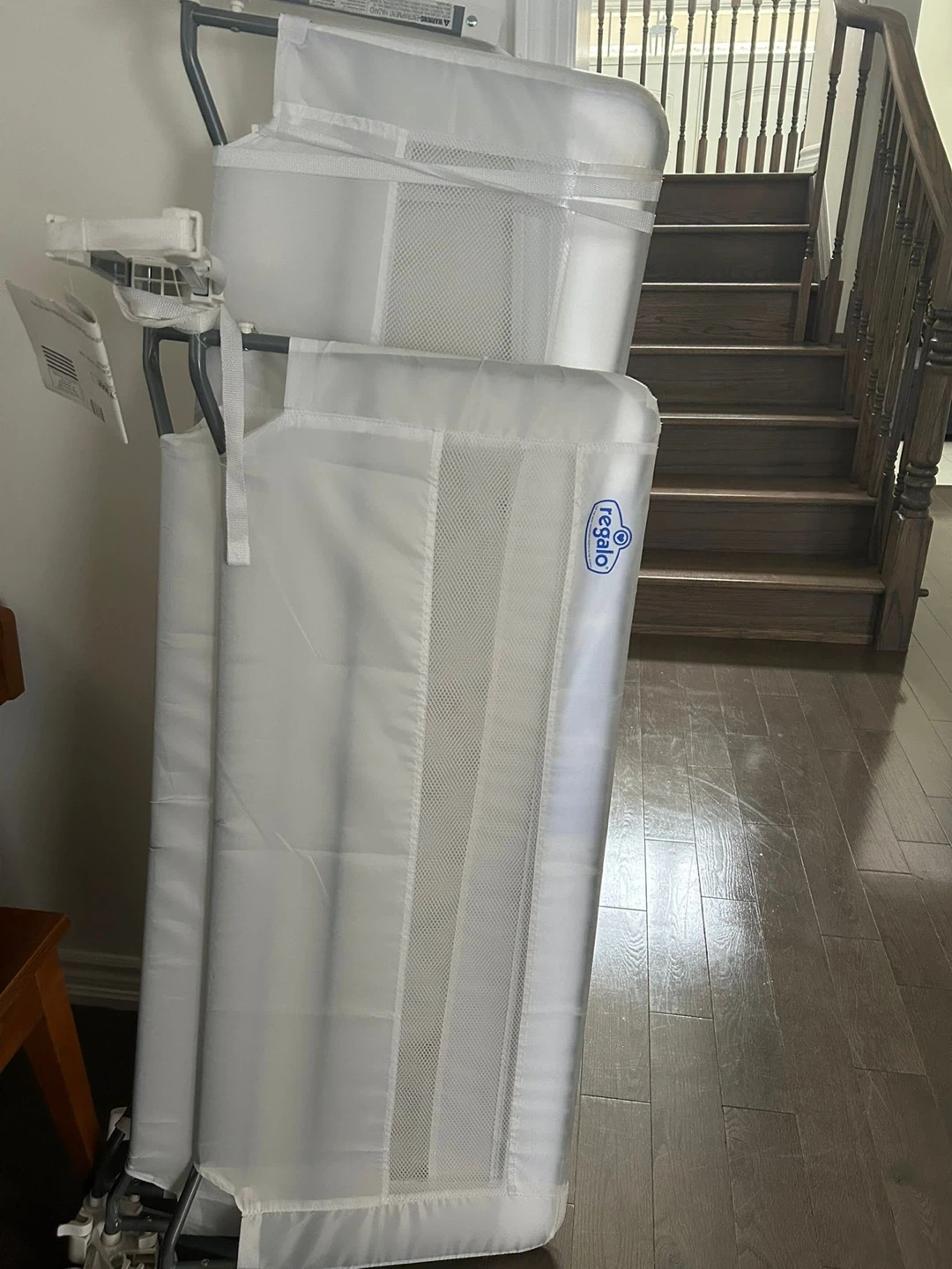 Selling a Regalo Swing Down Bed Rail in white. It's in great condition and ready to use. This bed rail is designed to keep your little one safe and secure while they sleep. It easily swings down for convenient access to the bed. Perfect for transitioning your child from a crib to a regular bed!