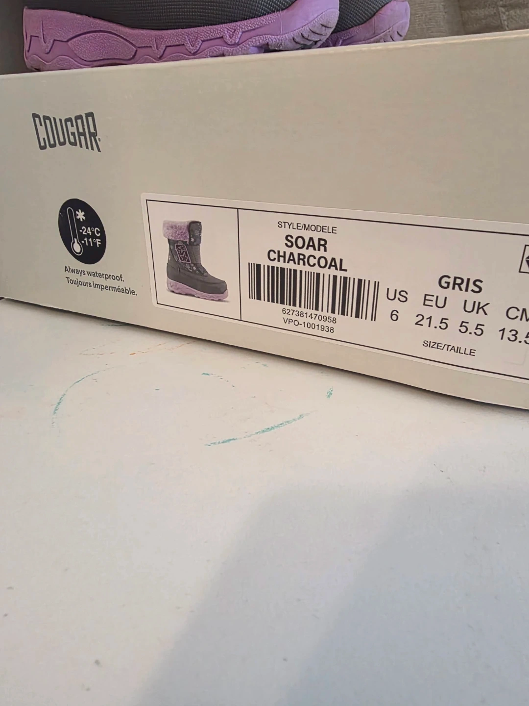 Selling a pair of Cougar Soar Charcoal winter boots in a size 6. These boots are waterproof and have a cute snowflake and star pattern. They come with the original box!