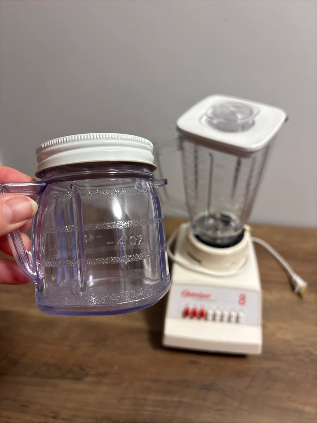 Selling an Osterizer blender with a measuring cup attachment. It's in good condition and ready for a new kitchen! Perfect for smoothies and more