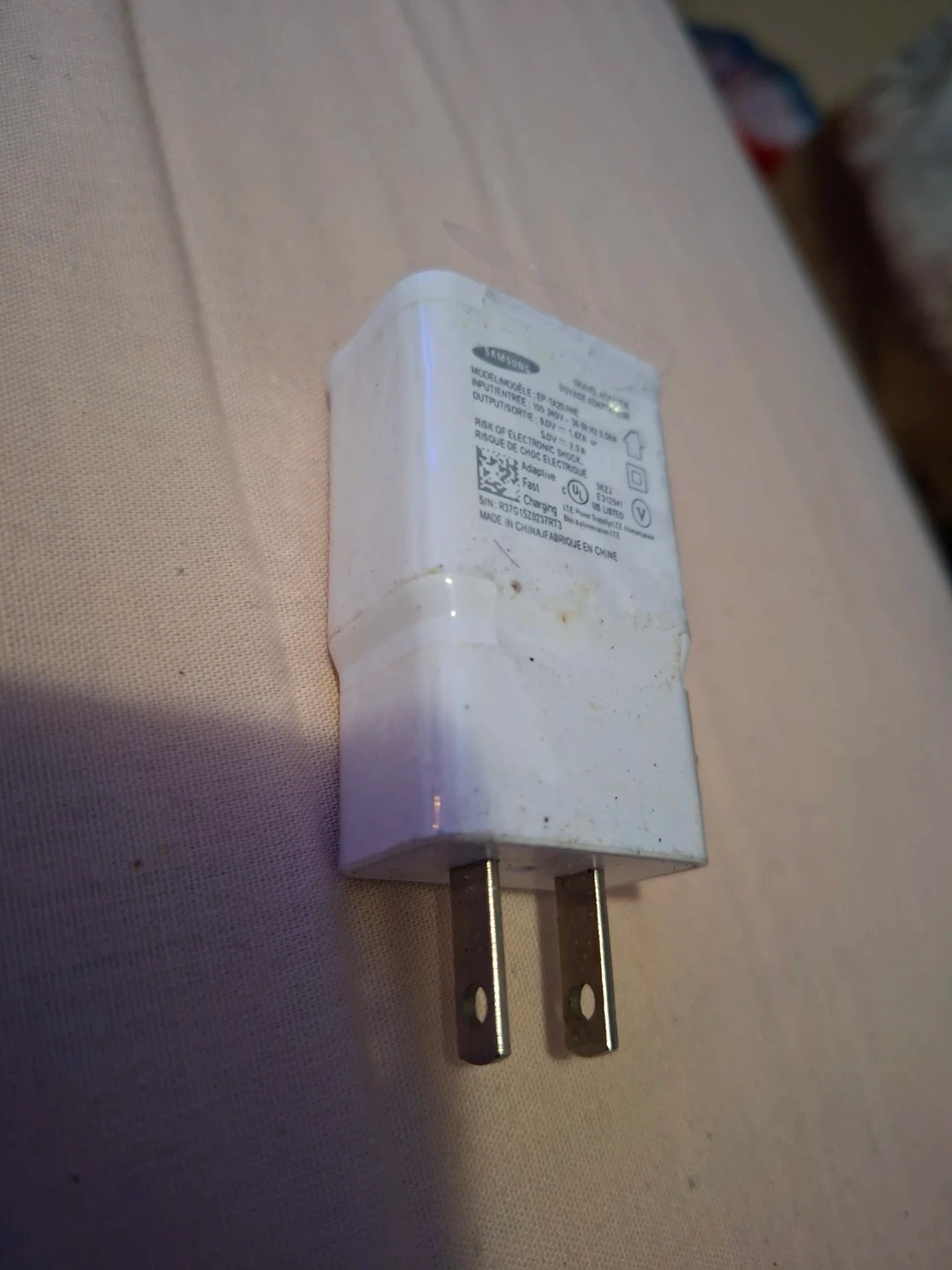 Selling a Samsung Adaptive Fast Charging power adapter. It's white and in used condition, but still works great! Perfect for charging your Samsung phone or other devices that support fast charging