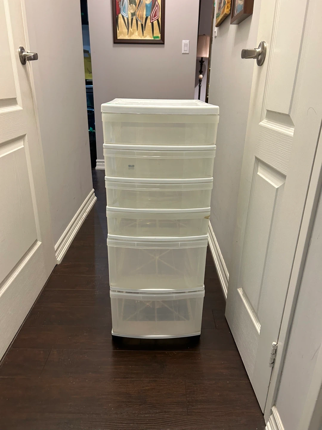 Selling a handy 5-drawer plastic storage tower! It's perfect for organizing items around the house. Great for closets, kids' rooms, or anywhere you need a bit of extra storage