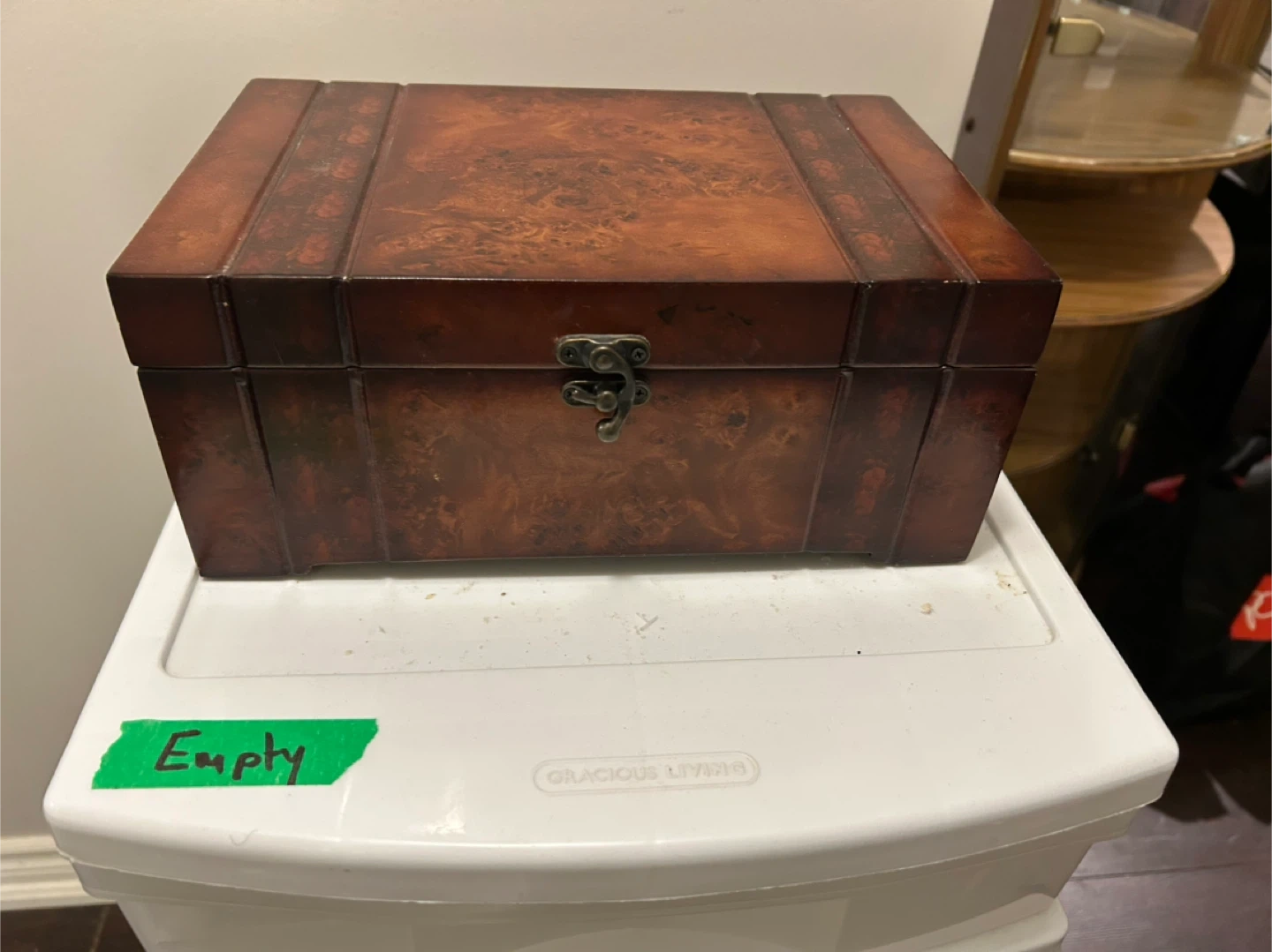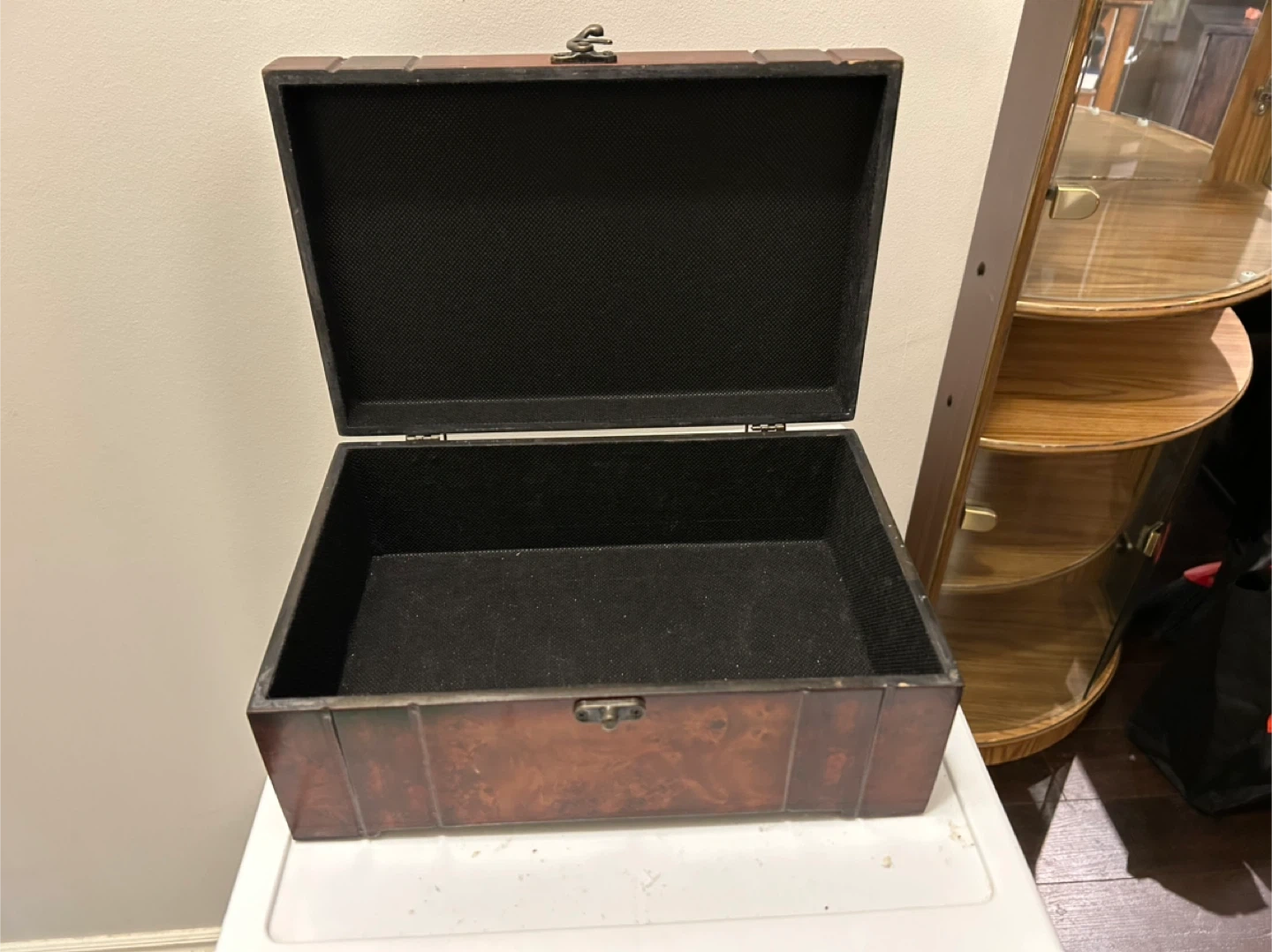 Selling a wooden decorative storage box. It's in great condition and perfect for adding a touch of rustic charm to any room! It can be used for storing various items.