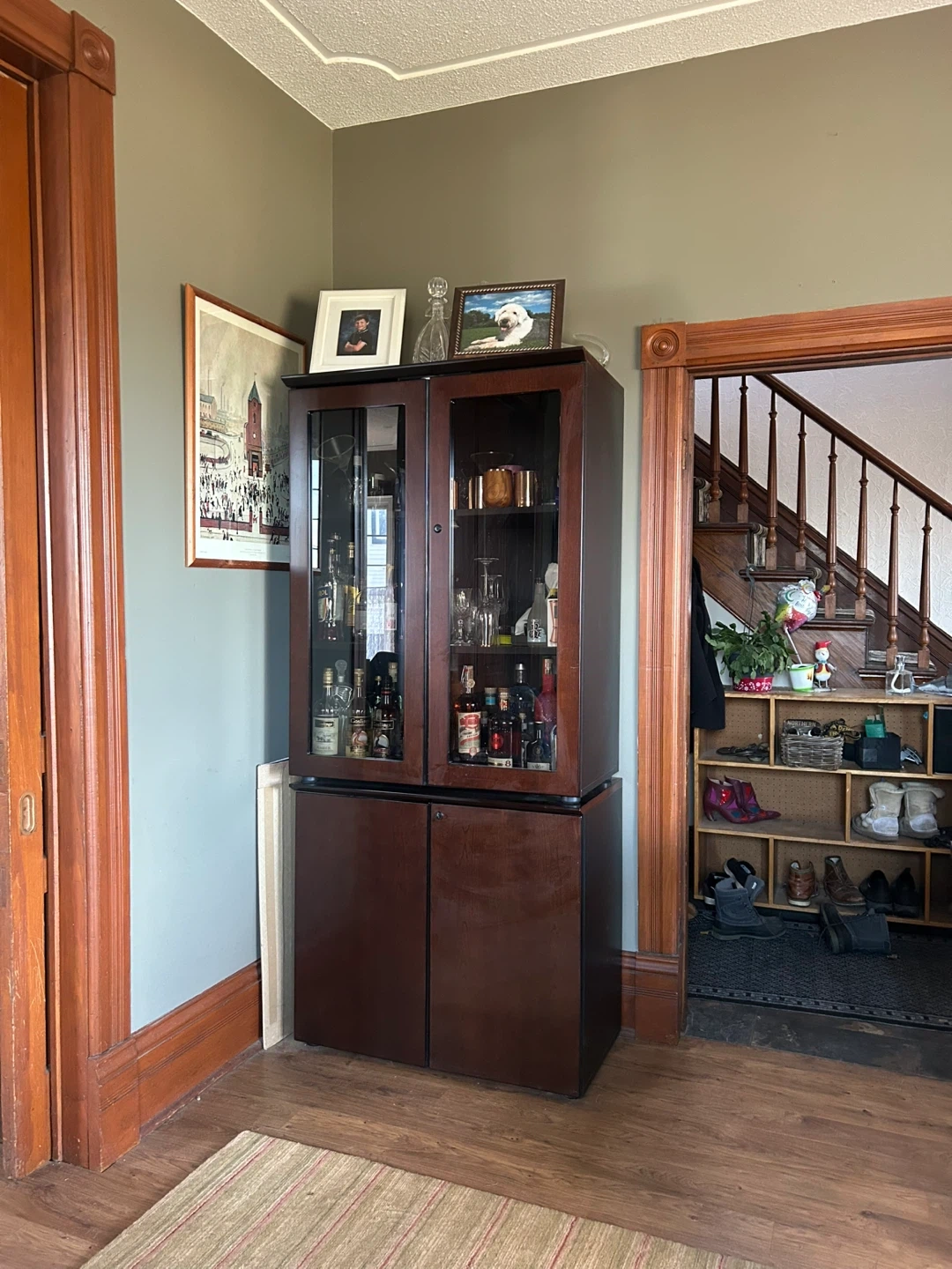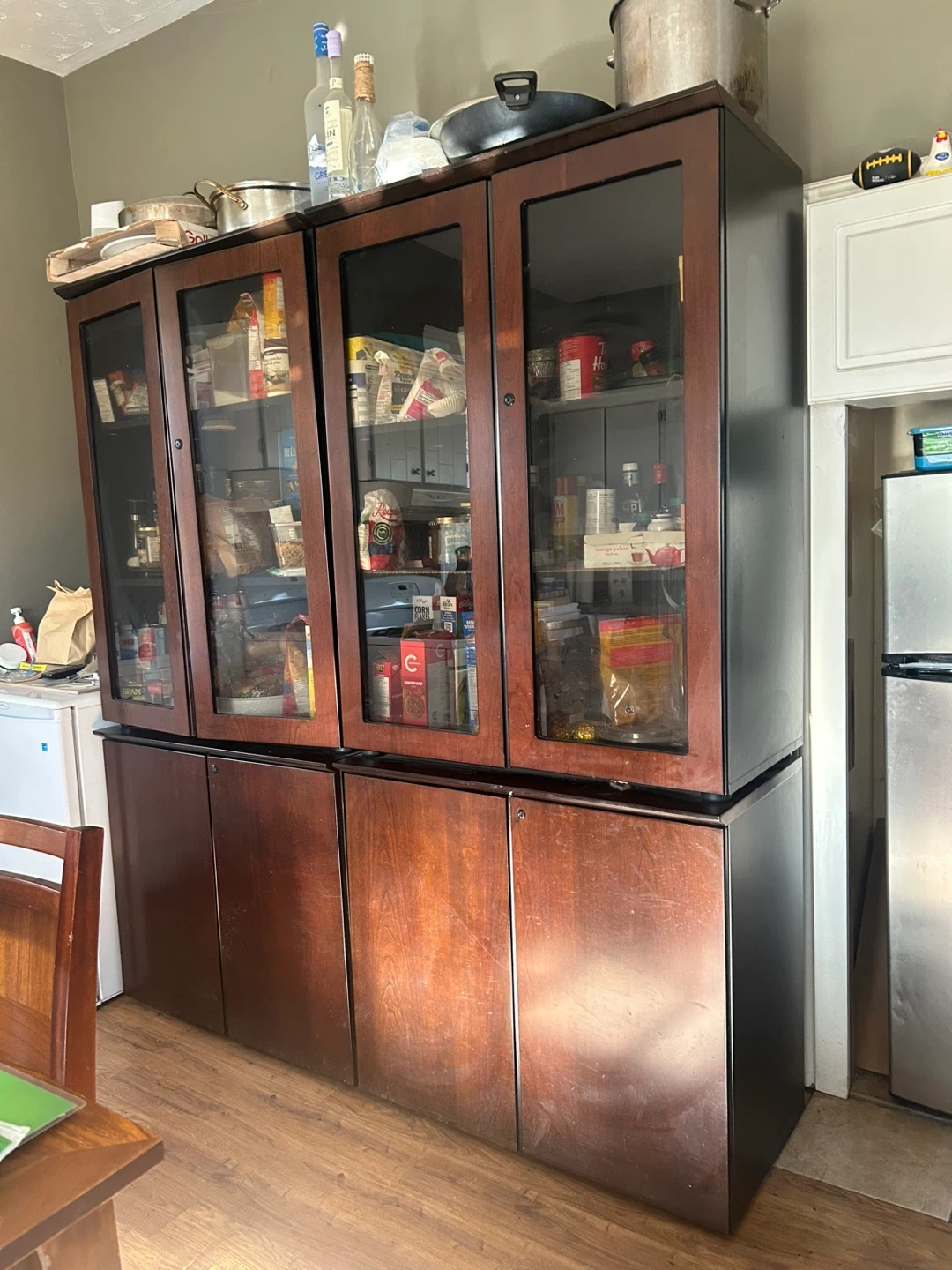 Display cabinet with glass doors, perfect for showcasing your favourite items or storing glassware. It's a great addition to any dining room or living space!