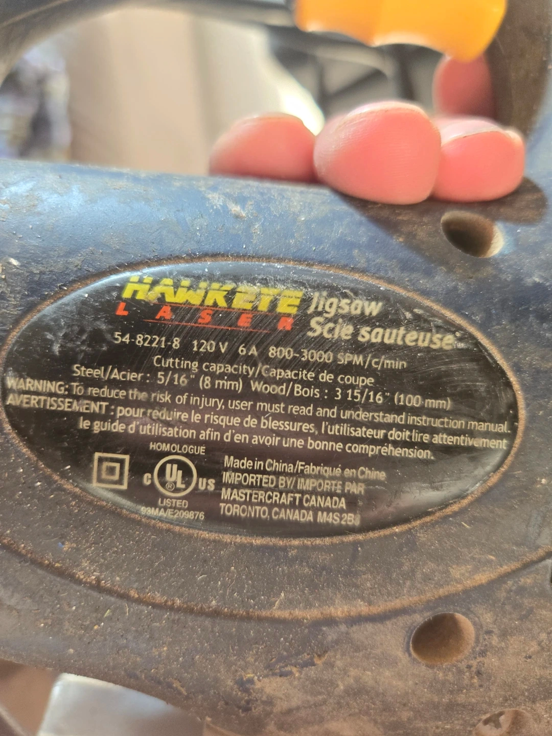 Selling a Mastercraft Hawkeye jigsaw. It's in good working condition and ready for your next project. It has a cutting capacity of 5/16" (8 mm) for steel and 3 15/16" (100 mm) for wood