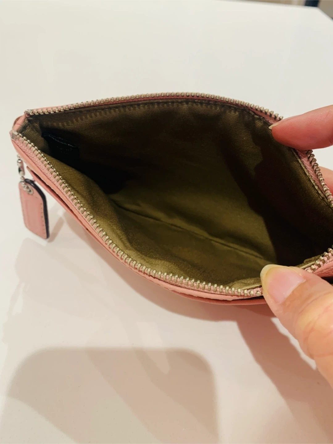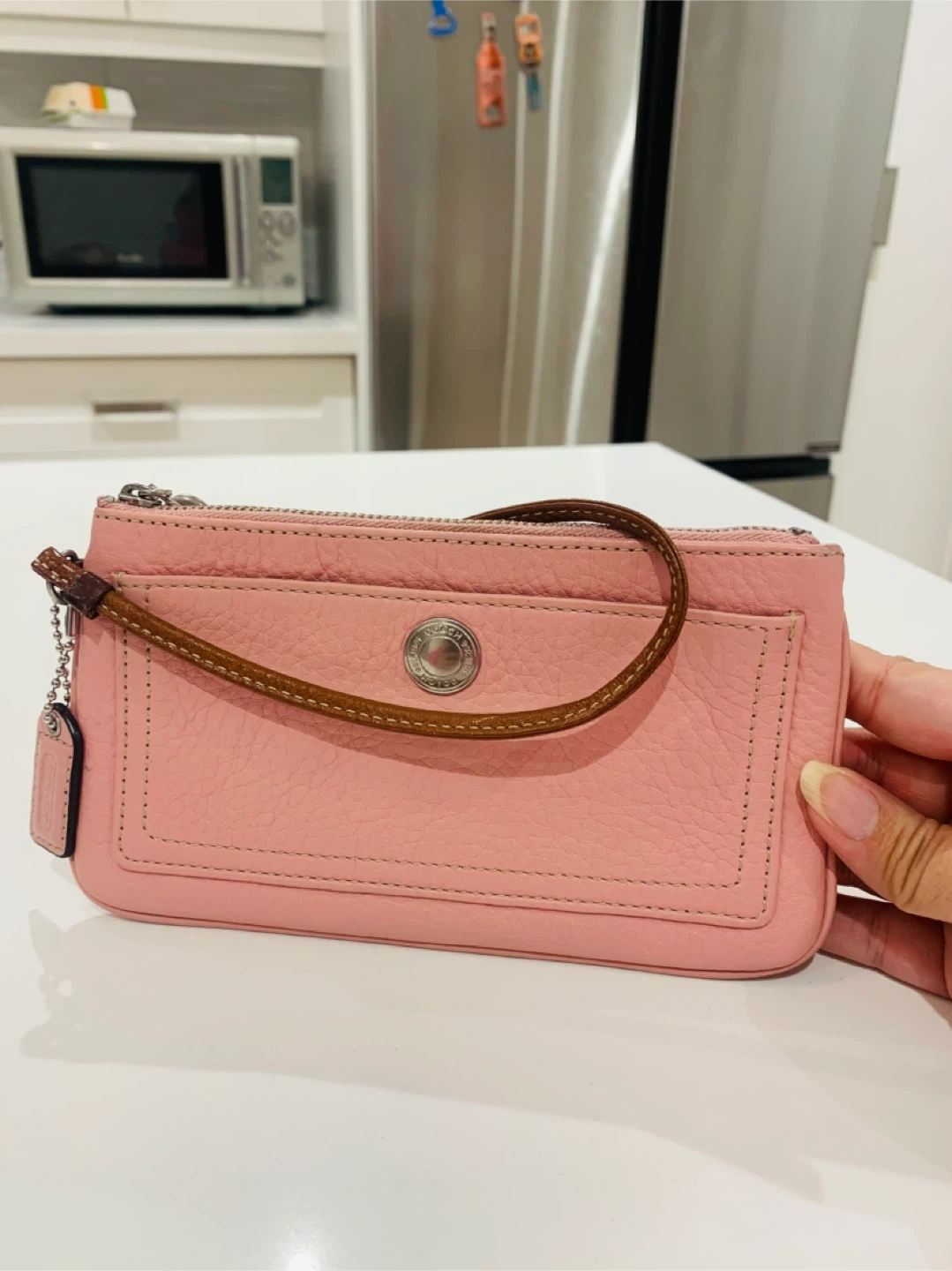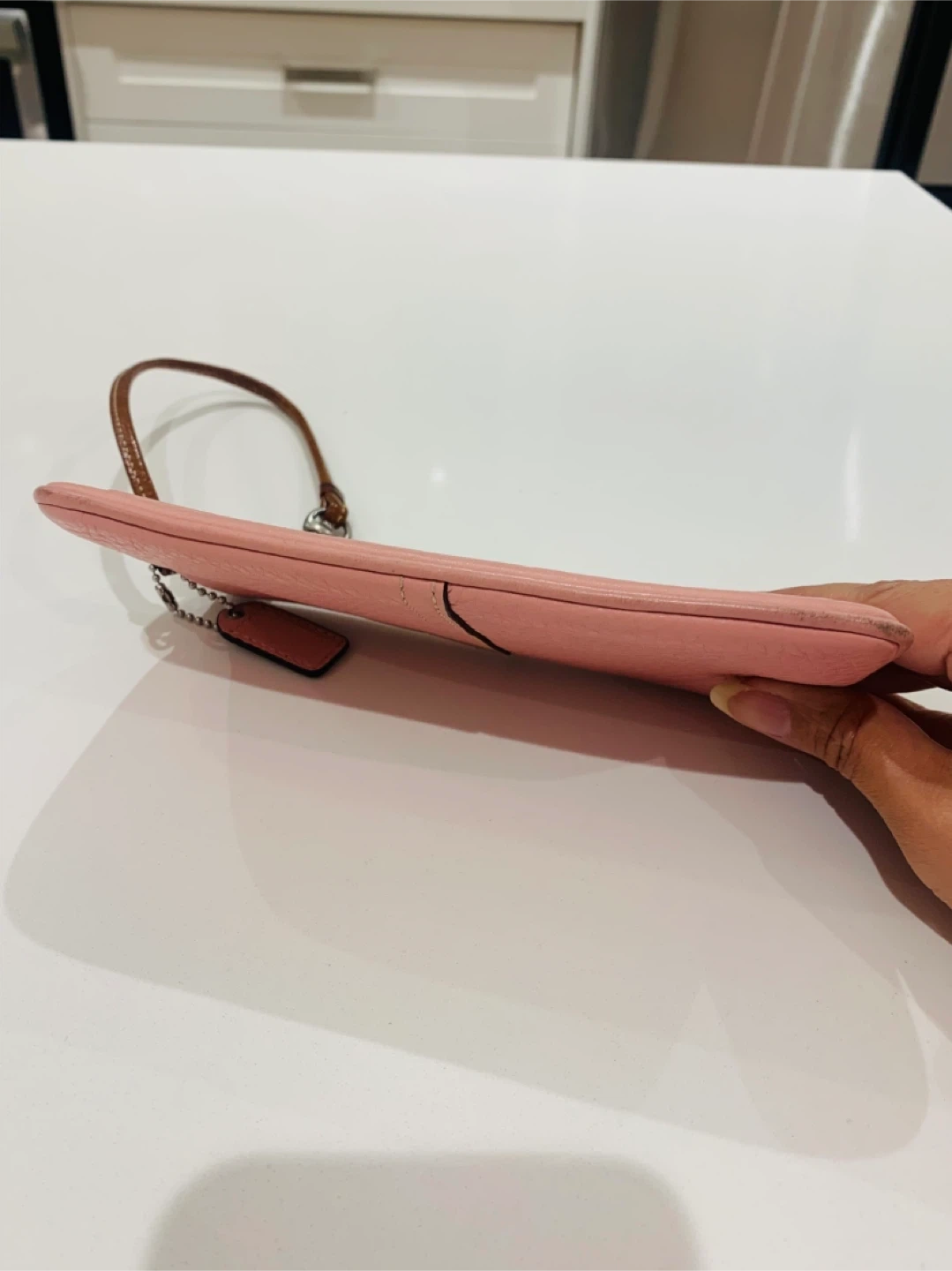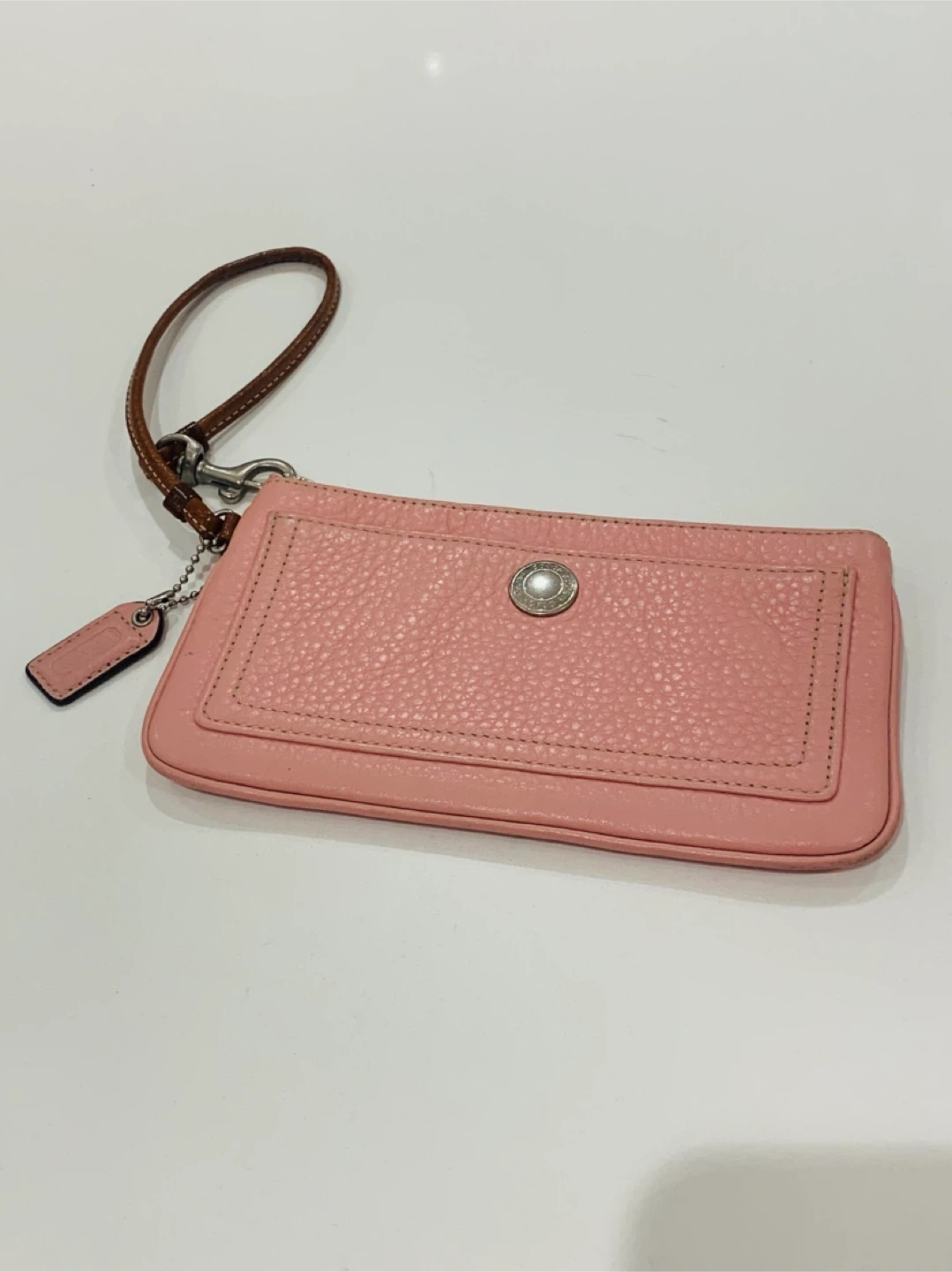 Selling a cute Coach wristlet in a lovely pink leather! It's perfect for carrying your essentials when you don't want to lug around a big purse. The wristlet has a zip closure and a wrist strap for easy carrying. It's in great condition and ready for a new home!