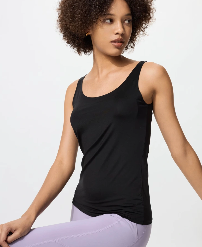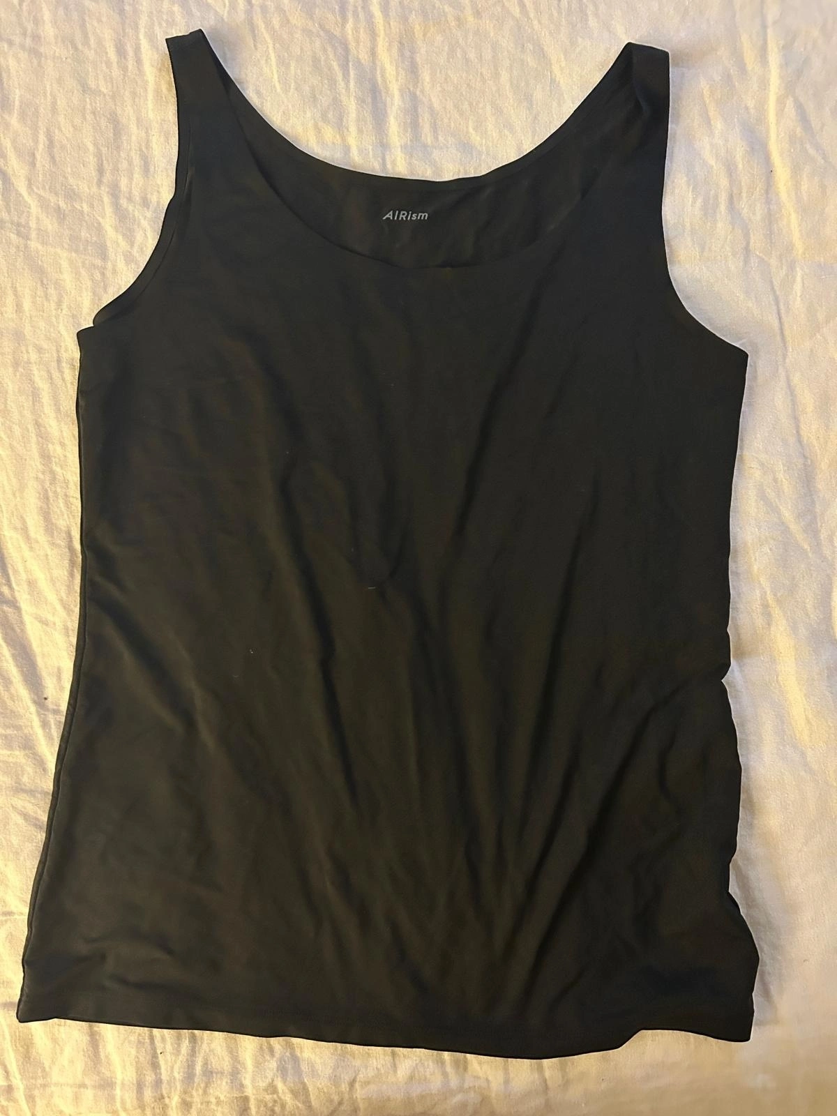 Size large. Super comfortable, stretchy, breathable and airy. Nice to wear under see through tops without feeling hot and stuffy. 65% Nylon, 25% Cupro, 10% Elastane ( 47% Made From Recycled Nylon )