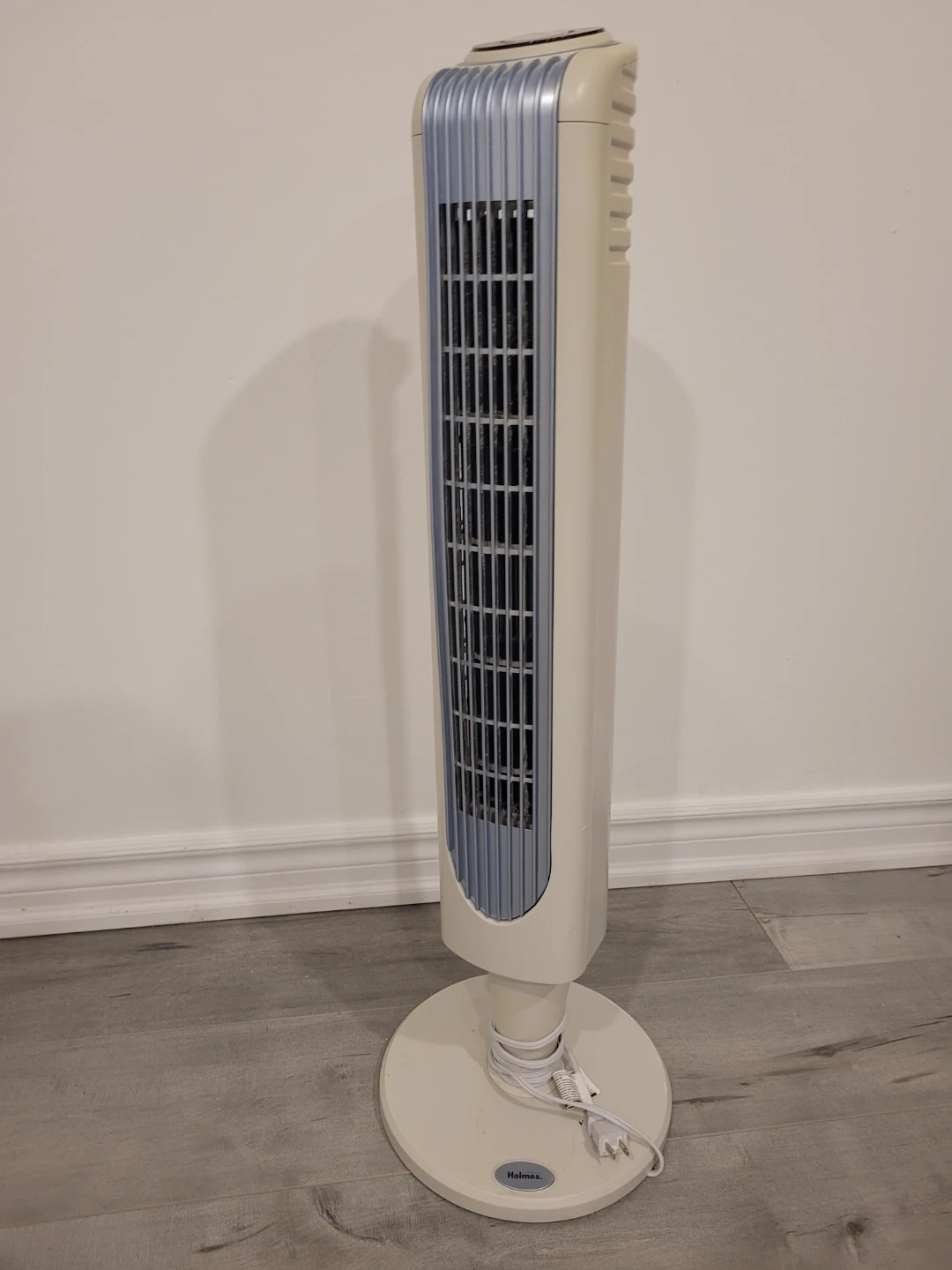 Selling a Holmes tower fan in good condition! It's perfect for keeping cool during those hot summer days. The fan is white with blue accents and will fit nicely into any room