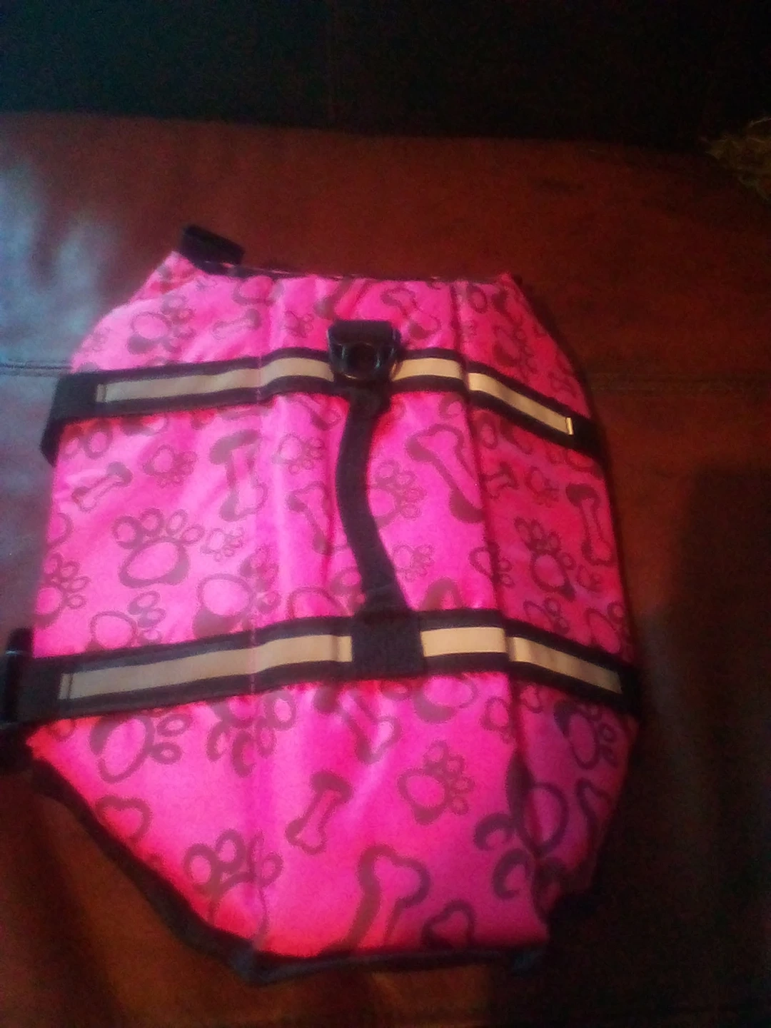Selling a pink dog life vest with a cute paw print and bone design! It's a size medium and looks to be in great shape for keeping your furry friend safe during water activities