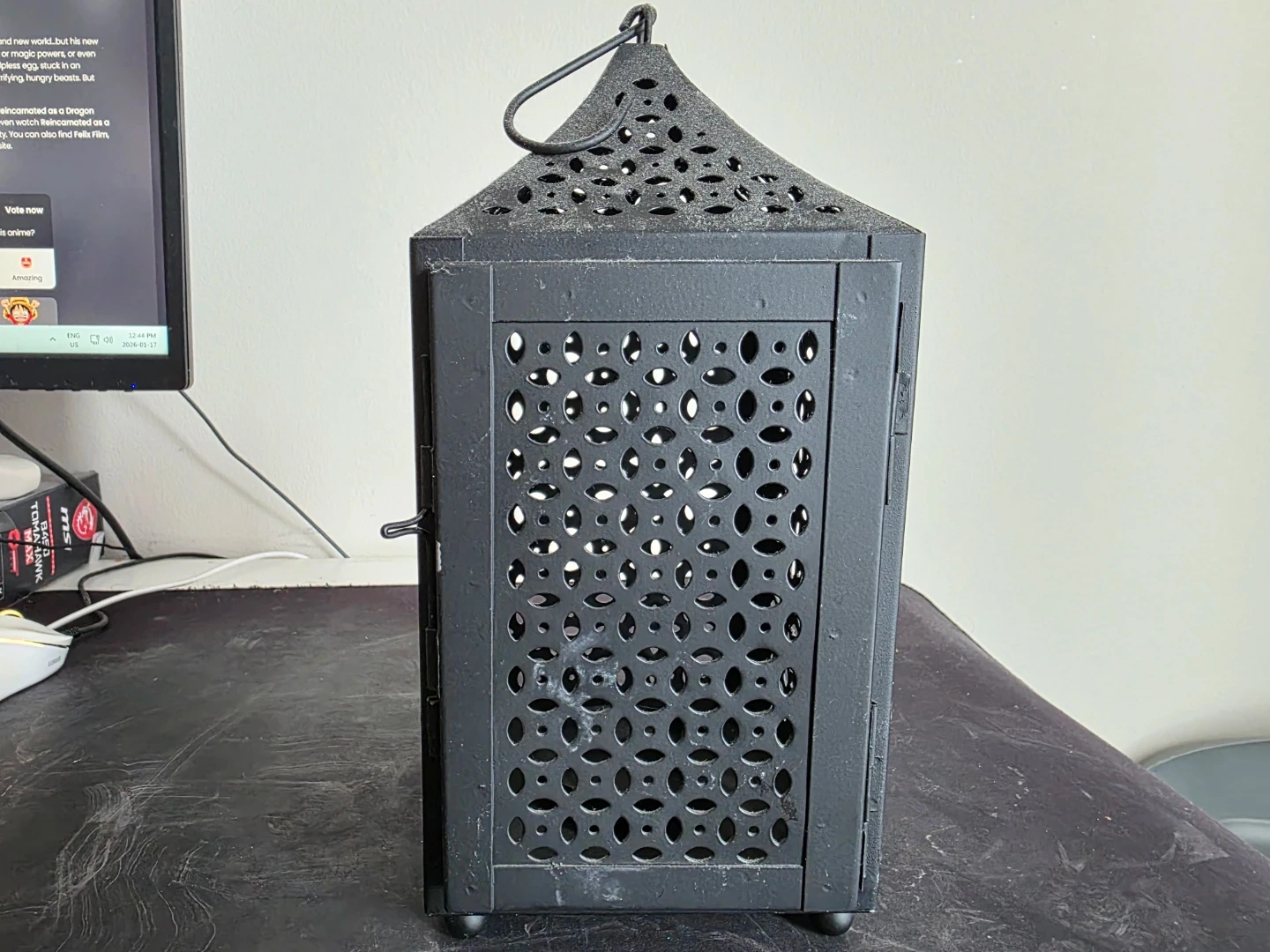Here's a lovely black metal candle lantern, perfect for adding a touch of cozy ambiance to any room! It's in great shape and ready to light up your space