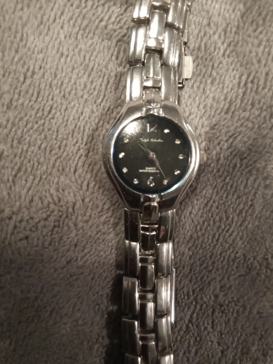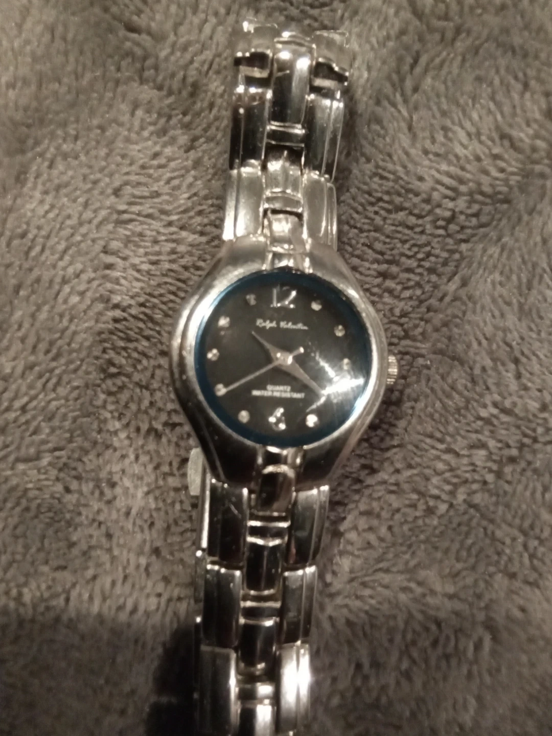 Selling a Ralph Valentino quartz watch! It's a stylish piece with a silver-tone band and a dark face. The watch is water-resistant and features a classic design. Perfect for everyday wear!