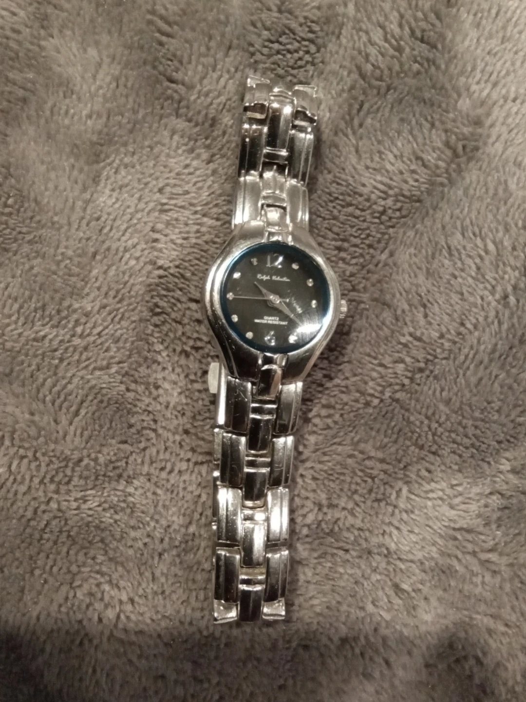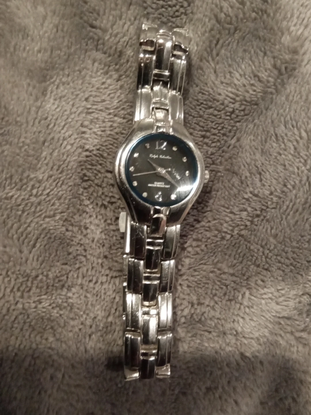 Selling a Ralph Valentino quartz watch! It's a stylish piece with a silver-tone band and a dark face. The watch is water-resistant and features a classic design. Perfect for everyday wear!