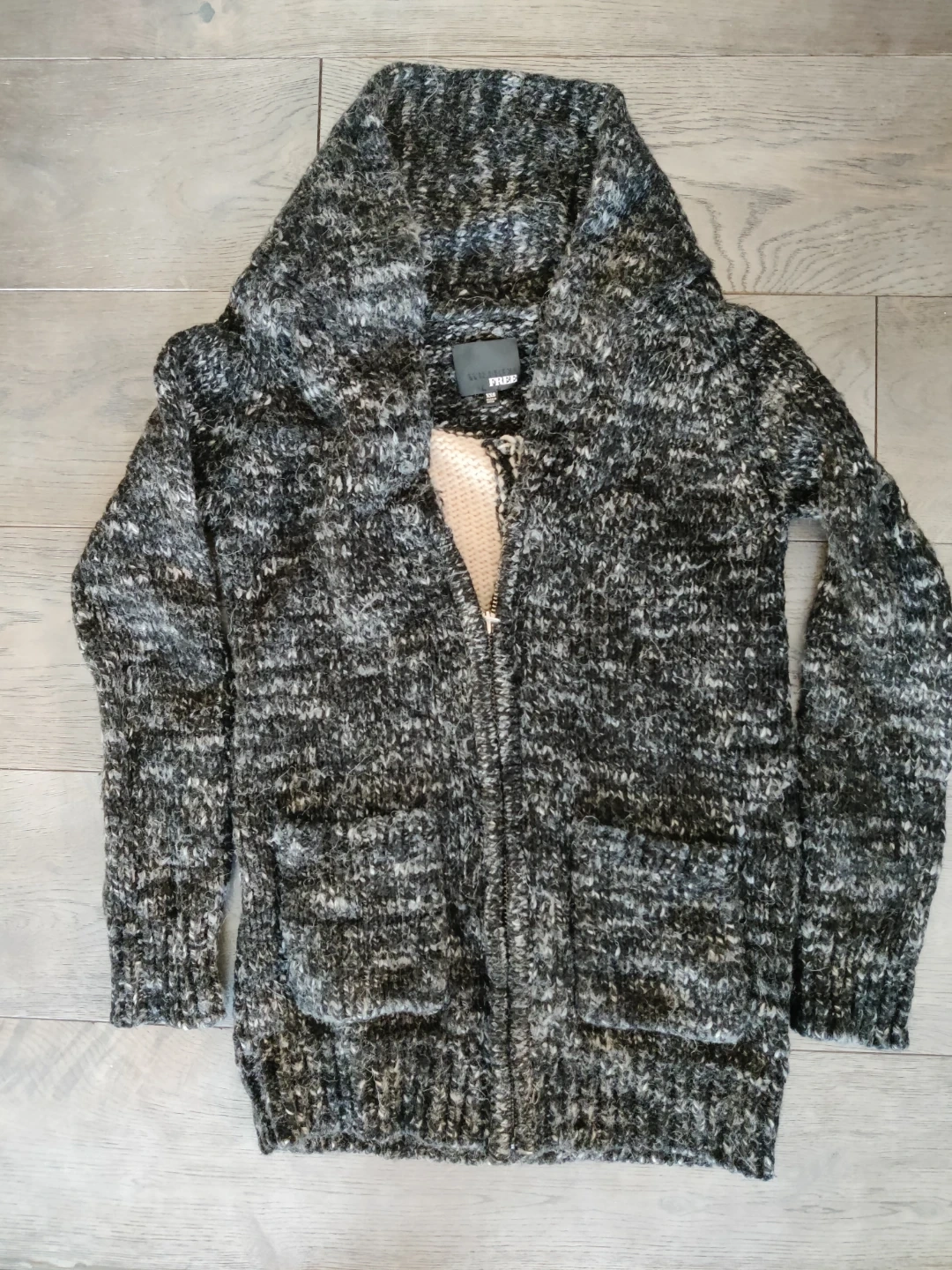 Cozy up in this Free People knit cardigan! It features a stylish grey knit design and a comfortable, oversized fit. Perfect for layering on chilly days!