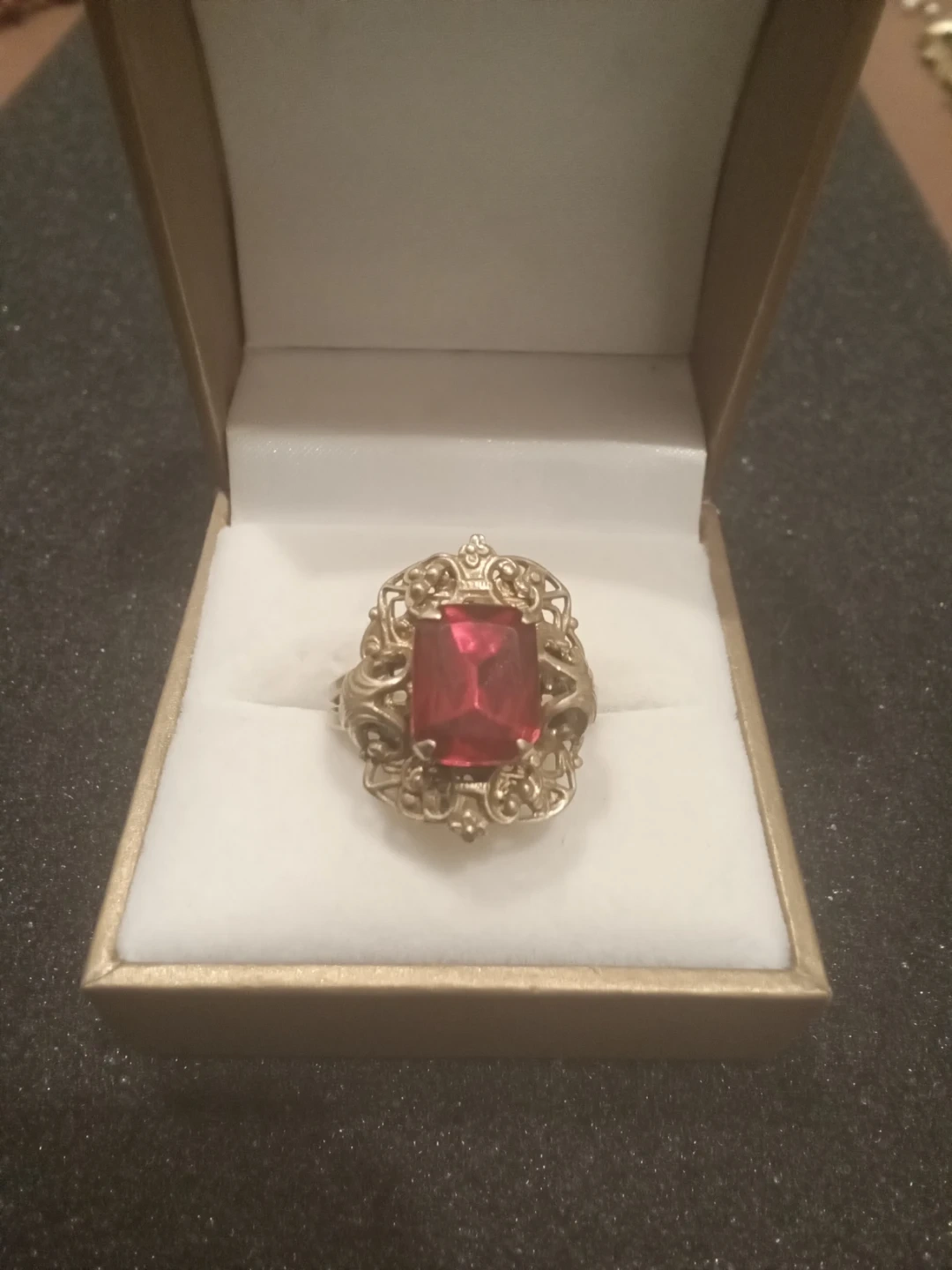 Buy & SellVintage Red Stone RingVintage Red Stone Ring$30Here's a vintage ring with a red stone! It comes in a box and is in great condition. The ring is a golden colour.ConditionLike newWHERE TO MEETmeridian credit unionView MapSELLERsamanthaQueensway494 reviews0 chats·0 favorites·19 viewsSEND CHAT TO SELLERHi samantha! I’m interested in your listing.Hi samantha! I’m interested in your listing.Get the Karrot app to chatSign In to chat