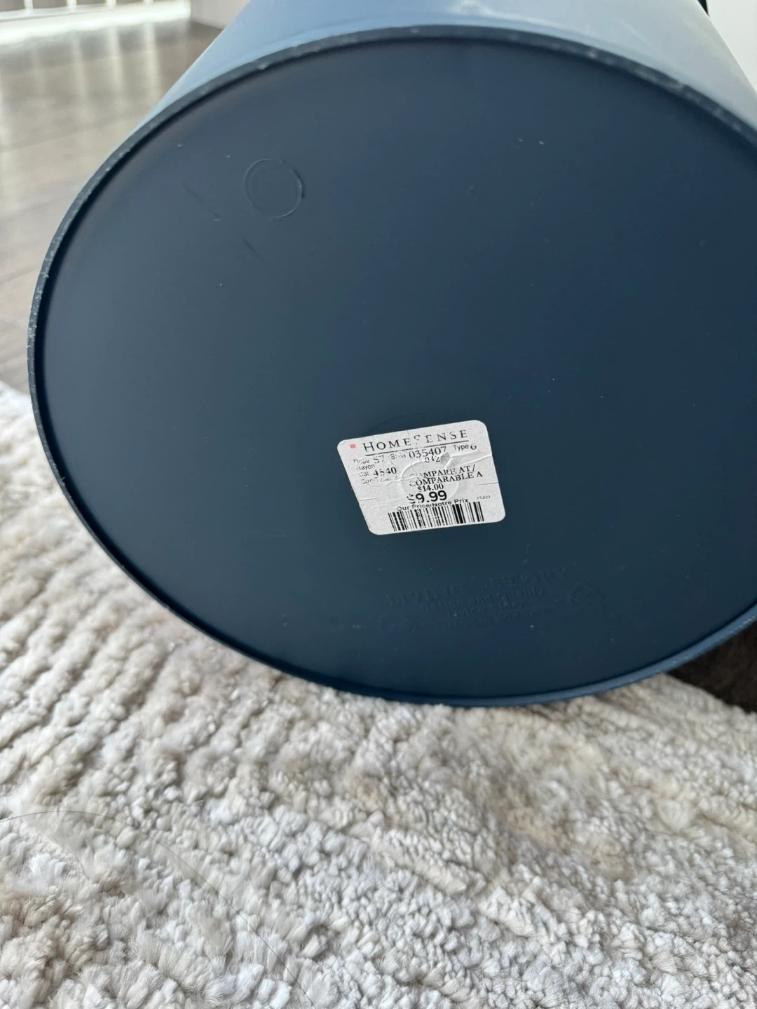 Selling a set of three trash bins ($10) in varying sizes and shades of blue and grey. These bins are perfect for organizing your waste and recycling in a stylish way. They're in good condition and ready for a new home!