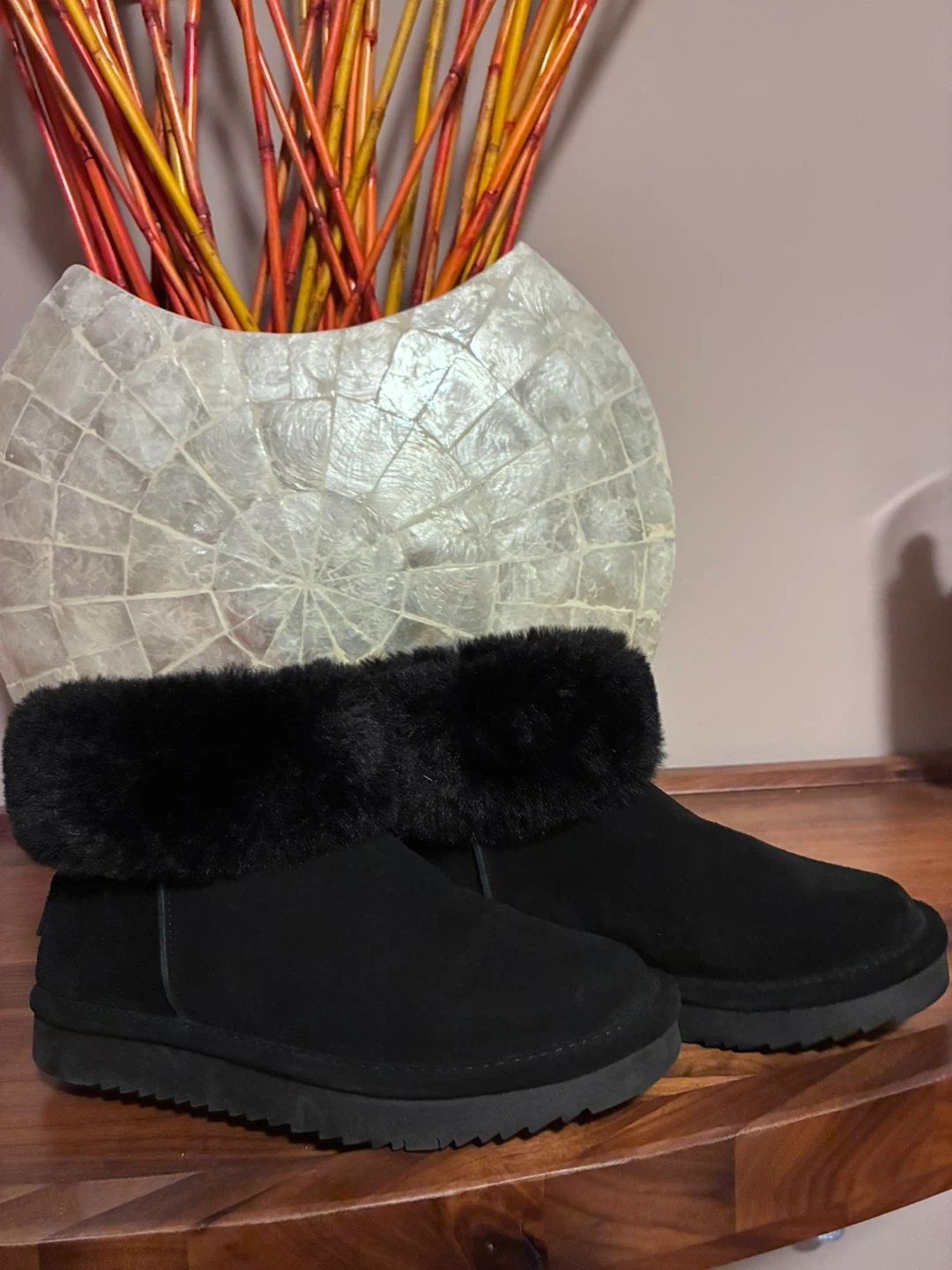 Cozy up with these Blondo black suede winter boots! Insulated, water-proof! They feature a plush faux fur trim for extra warmth and style. Perfect for comfort and coziness!