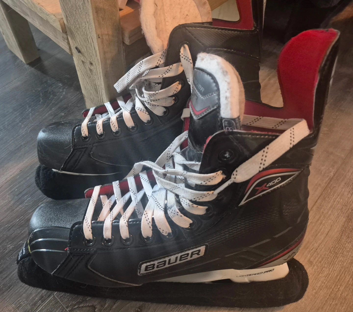 Buy & SellBauer X400 Ice Hockey SkatesBauer X400 Ice Hockey Skates$100Selling a pair of Bauer X400 ice hockey skates. They are black with red accents and in good condition. Great for recreational skating or hockey!ConditionLike newWHERE TO MEETTim HortonsView MapSELLERverifiedTMarieMonaghan650 reviews1 chats·0 favorites·14 viewsSEND CHAT TO SELLERHi TMarie! I’m interested in your listing.Hi TMarie! I’m interested in your listing.Get the Karrot app to chatSign In to chat