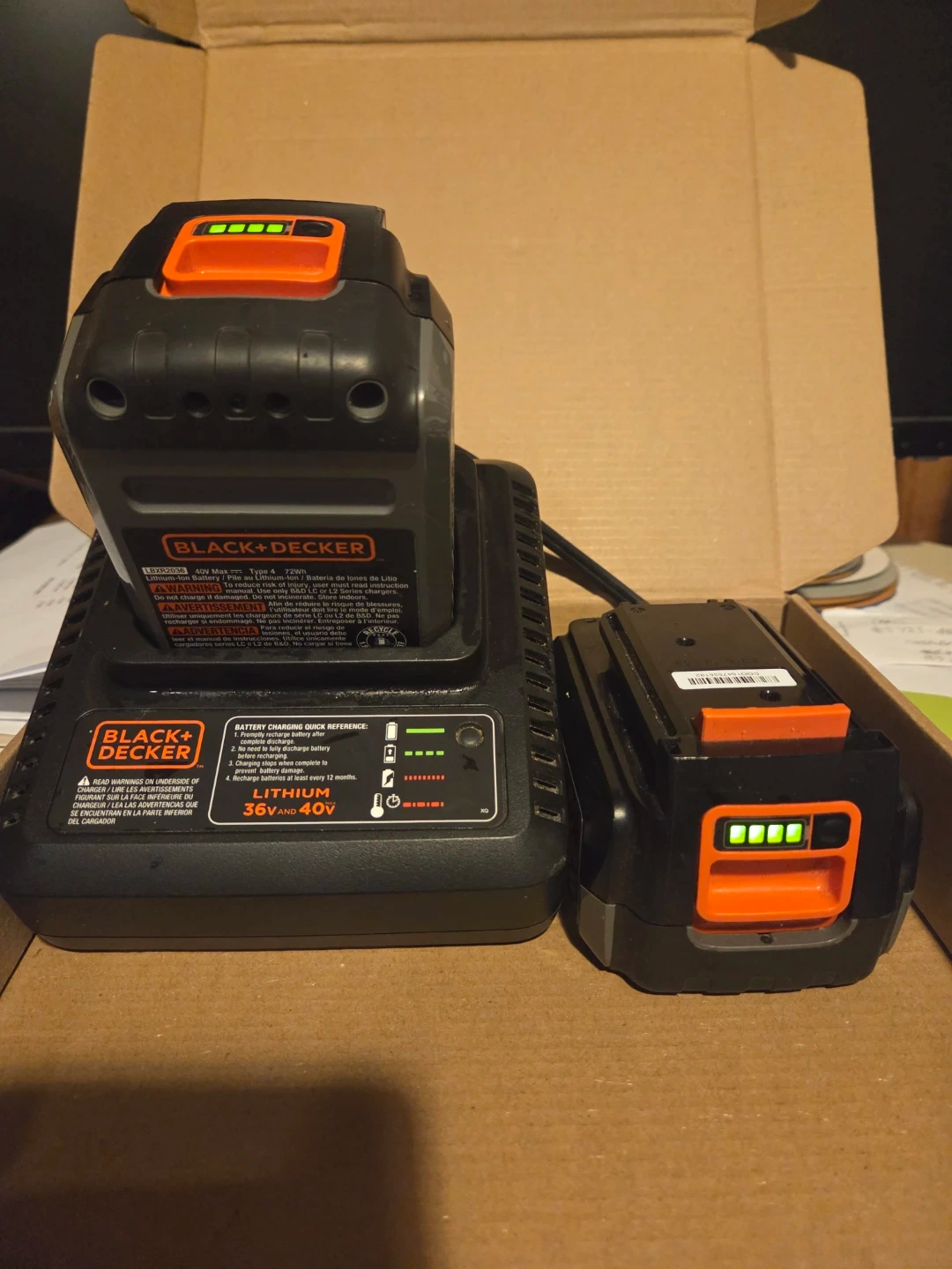 Selling two gently-used Black+Decker lithium-ion batteries and charger combo! The batteries can be used in any 36V/40V model tools such as a lawnmower, leaf blower, string trimmer & hedge trimmer.