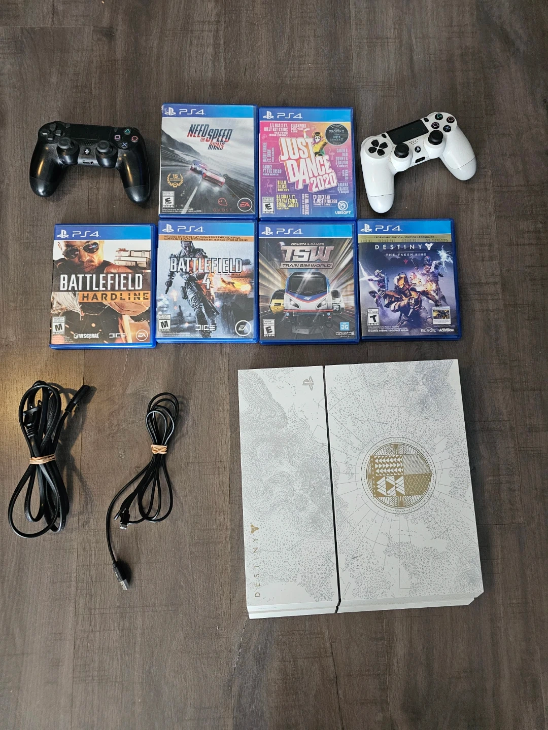 Selling a PlayStation 4 Destiny: The Taken King Limited Edition bundle! Includes the console, two controllers (one black, one white), and several games: