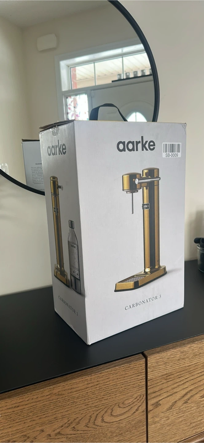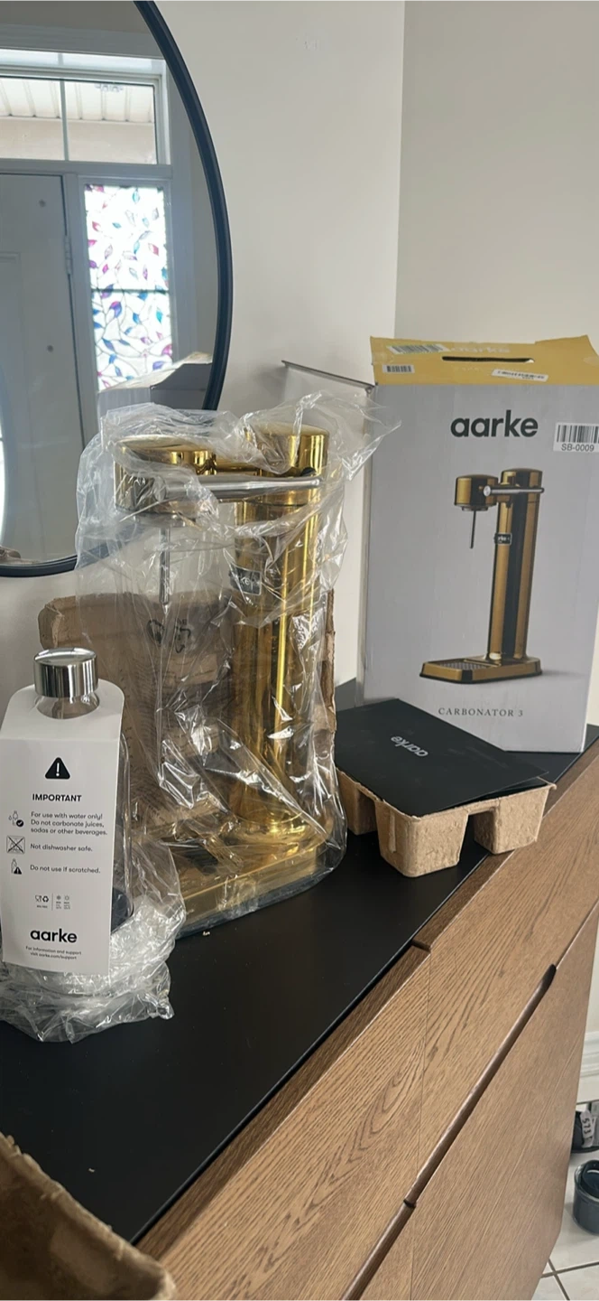 Selling a brand new Aarke Carbonator 3 in gold! It's still in its original packaging and has never been used. This sleek and stylish sparkling water maker will look great in your kitchen. Comes with the box and all original components. Enjoy fresh sparkling water at home!