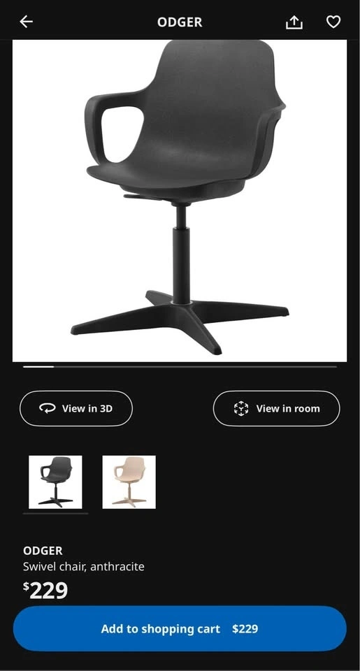 Buy & SellDesk ChairDesk Chair$76Like new desk chair. $229 regular price at Ikea. It swivels. Graphite grey. Excellent support. Pick up in Regent Park.WHERE TO MEETCheck LocationView MapSELLERAndrewRegent Park504 reviews0 chats·0 favorites·15 viewsSEND CHAT TO SELLERHi Andrew! I’m interested in your listing.Hi Andrew! I’m interested in your listing.Get the Karrot app to chatSign In to chat