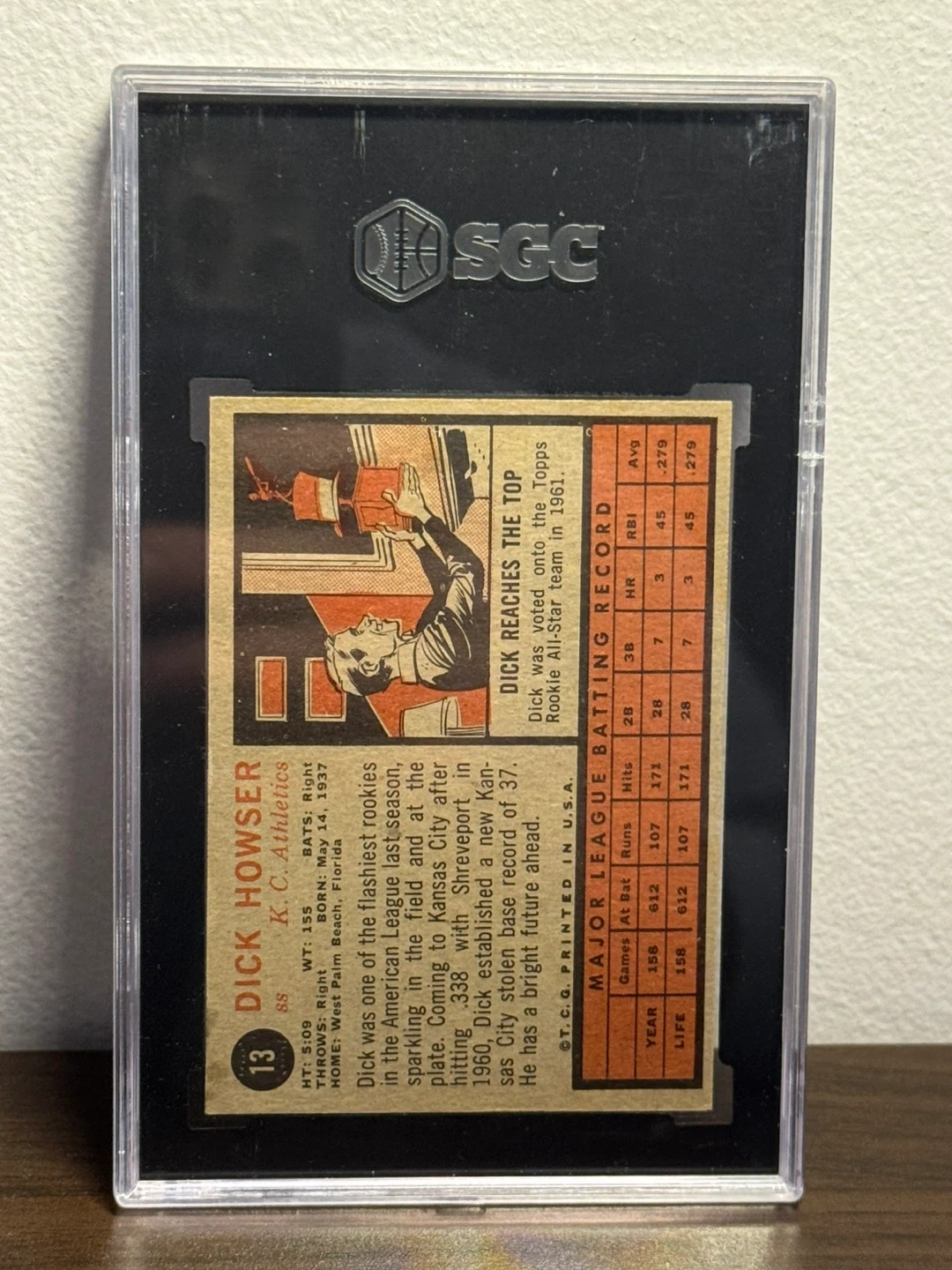 Buy & Sell1962 Topps Dick Howser #13 Baseball Card1962 Topps Dick Howser #13 Baseball Card$45Selling a 1962 Topps Dick Howser #13 baseball card, graded SGC 6 EX. A great addition to any collection!WHERE TO MEETUnion station areaView MapSELLERverifiedCarlosDowntown Toronto972 reviews0 chats·0 favorites·4 viewsSEND CHAT TO SELLERHi Carlos! I’m interested in your listing.Hi Carlos! I’m interested in your listing.Get the Karrot app to chatSign In to chat