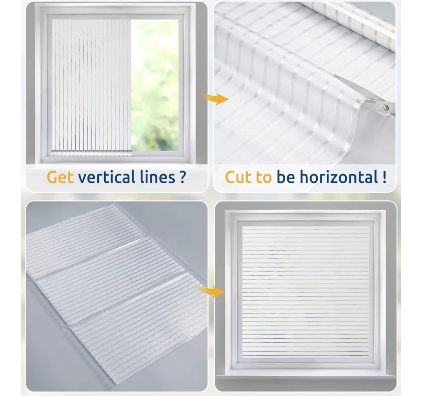 It offers privacy without sacrificing light, so you can enjoy a bright and airy space while still maintaining your privacy. It's easy to cut to be horizontal or get vertical lines, depending on your preference.