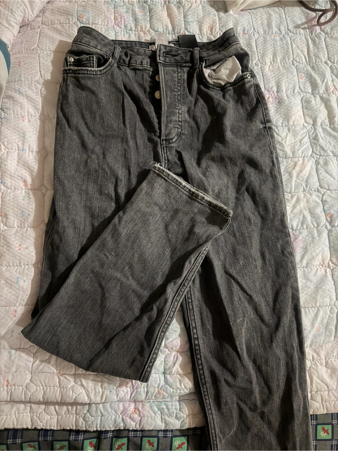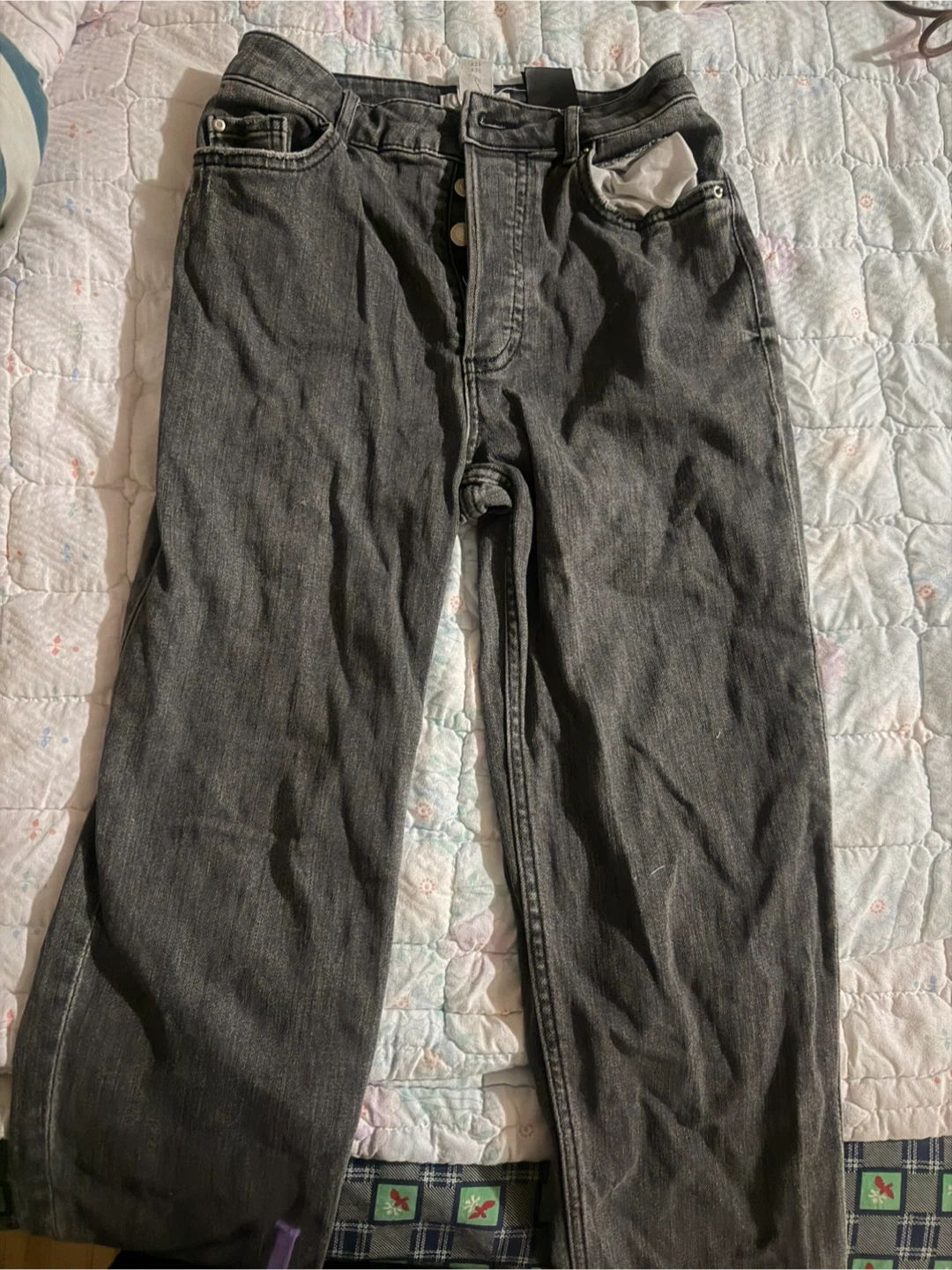 Selling a pair of grey denim jeans! They're in good condition and ready for a new owner. Perfect for everyday wear!
