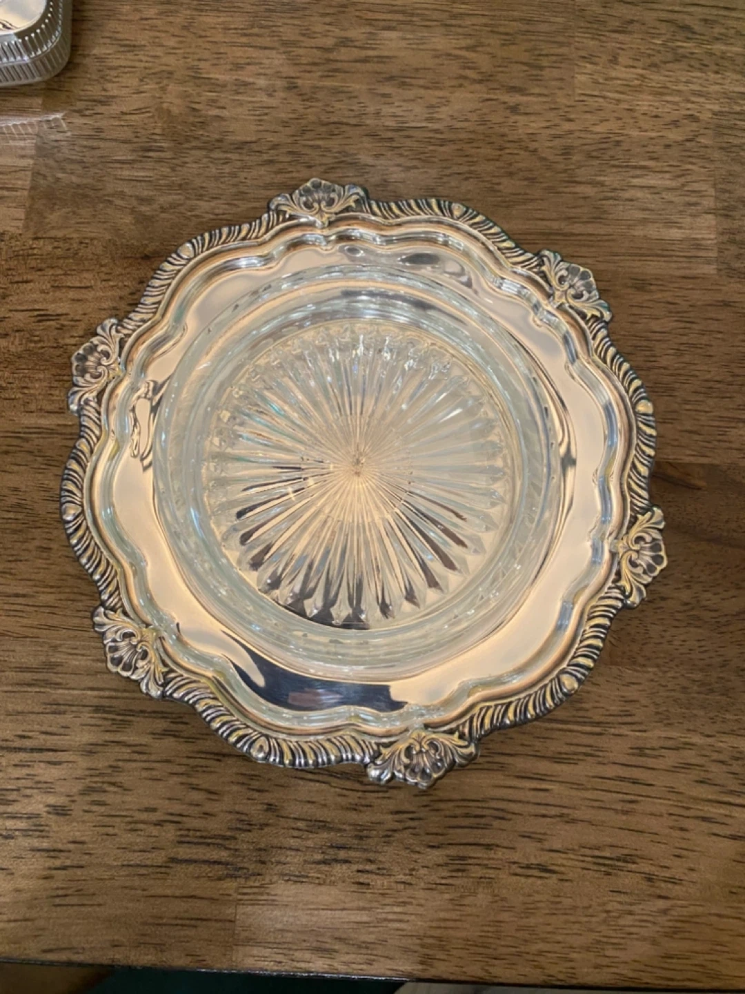 Selling a lovely silver plated serving diah with a glass insert! It's in great shape and would look beautiful on any table.