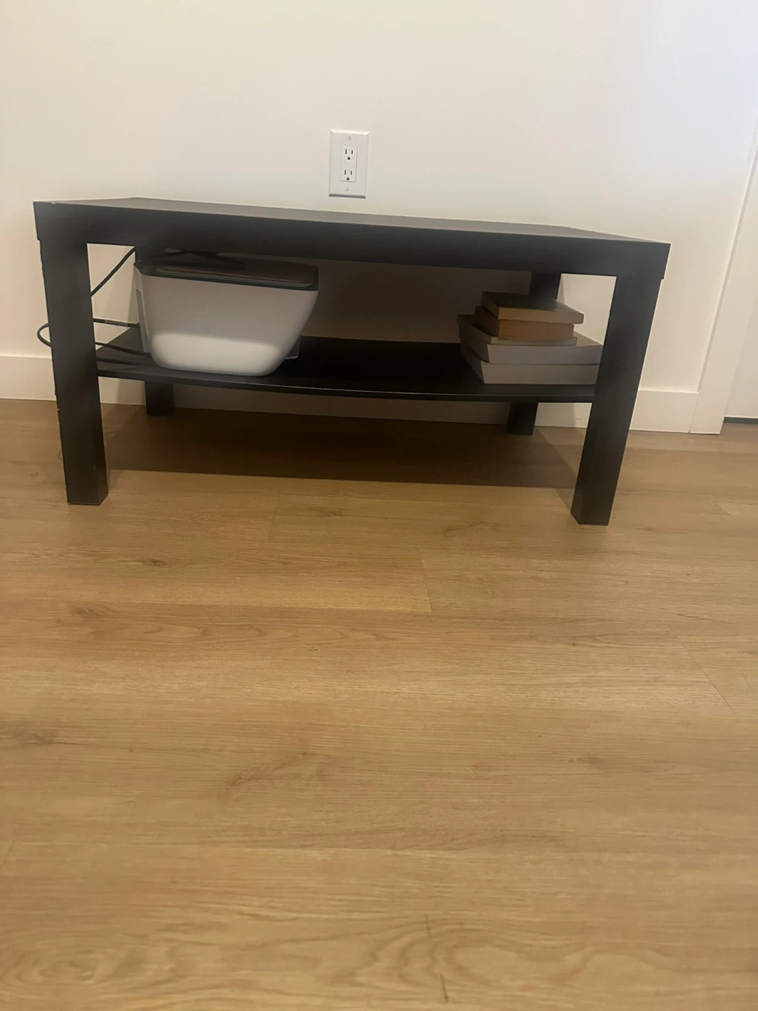 Selling a black TV stand or side table. It's in great condition and measures approximately 15 inches in height, 15 inches in width, and 35 inches in length. Perfect for any living room or bedroom!