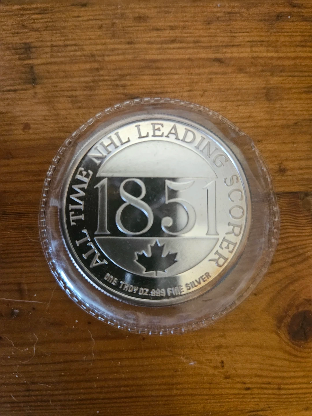 Selling a limited edition Wayne Gretzky fine silver coin. It is One Troy Oz .999 Fine Silver and commemorates Gretzky as the NHL's all-time leading scorer with 1851 points. Comes with display box