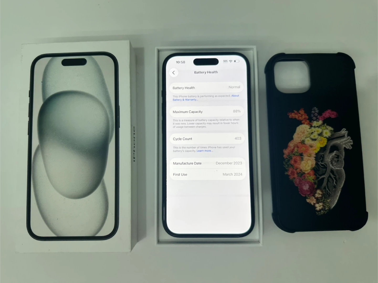 Apple iPhone 15 128GB Space Grey Dual Sim Unlocked 88% Battery