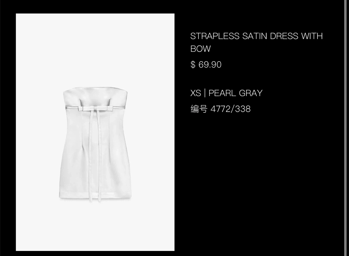 Selling a Zara strapless satin dress with a cute bow detail! It's a size XS and in a lovely pearl gray colour. Originally bought for $69.90!