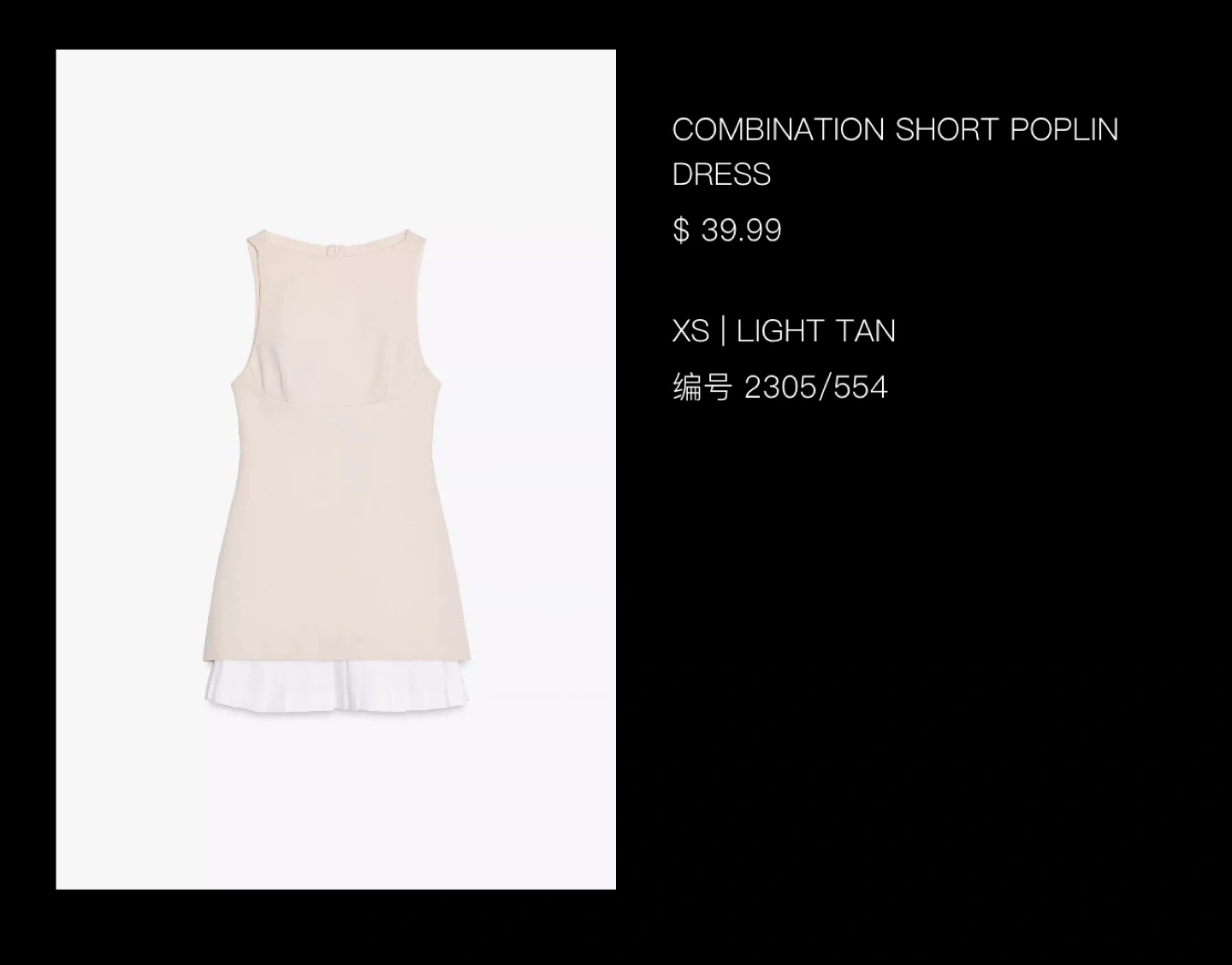It’s brand new, tag is off is because I thought I’m gonna keep it!Selling a Zara Combination Short Poplin Dress in size XS. It's a light tan colour with a white poplin detail at the bottom. Originally bought for $39.99!
